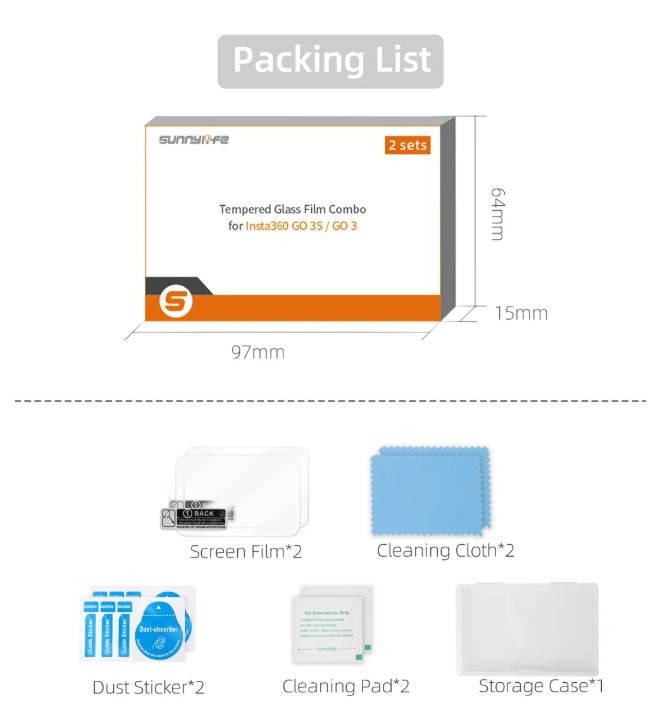 Védelem típusa: edzett üveg Darabszám a csomagban: 2 Anyag: edzett üveg Kompatibilitás: Insta360 GO 3, Insta360 GO 3S