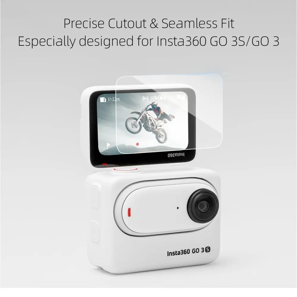 Edzett üveg kijelzővédő Insta360 GO 3 és GO 3S készülékekhez a kamera kijelzőjének védelmét szolgálja karcolások, szennyeződések és kisebb ütések ellen mindennapi használat és utazás során. A pontos kialakításnak köszönhetően az üveg tökéletesen illeszkedik a kijelzőre, és megőrzi az érintésvezérlés teljes funkcionalitását.
