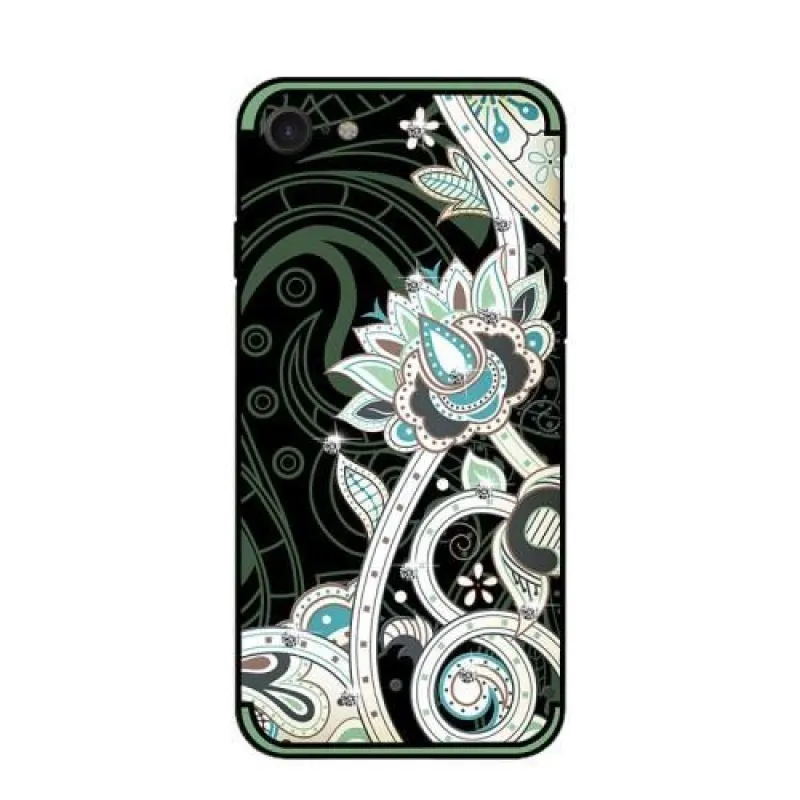 Zselés borítás zöld elemekkel és virágos díszítéssel, csillogó strasszkövekkel díszítve iPhone 8 vagy iPhone 7 készülékhez