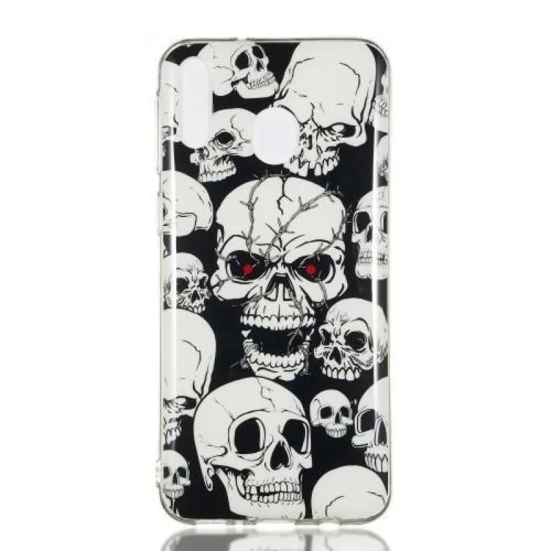 Éjfényes zselés tok mobiltelefonhoz Samsung Galaxy M20 - koponya