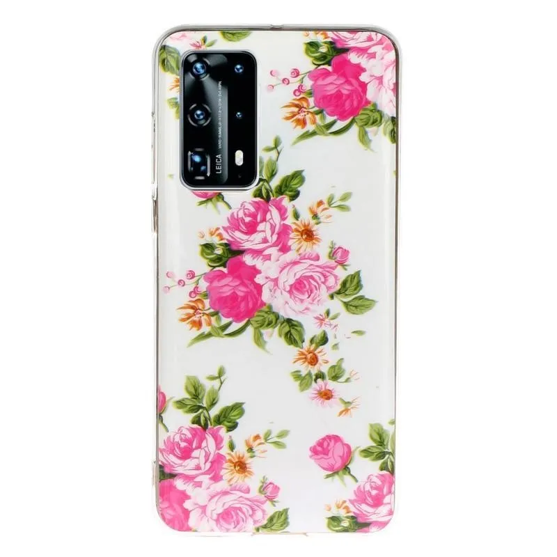 Éjjeli fényes gél tok mobil Huawei P40 Pro - élő virágok