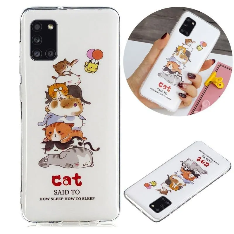 Éjjeli fényes gél tok mobil Samsung Galaxy A31 - macskák