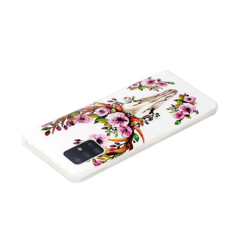 Éjjeli fényes zselés tok mobil Samsung Galaxy A51 5G - koponya virágokkal