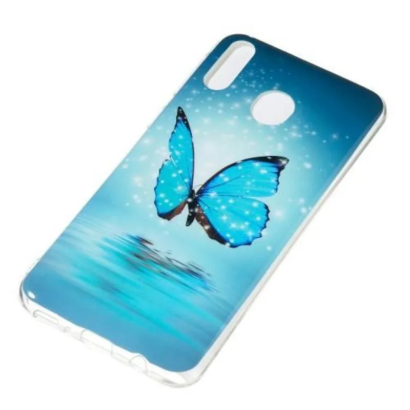 Éjjeli fényes zselés tok mobil Samsung Galaxy M20 - kék pillangó