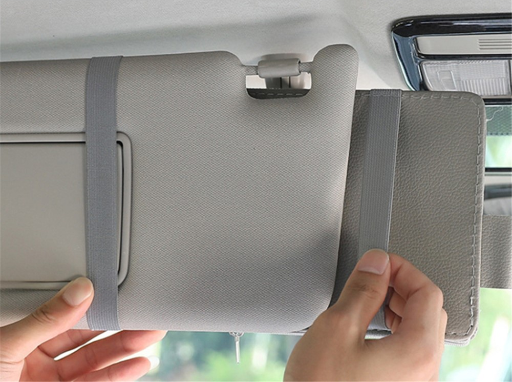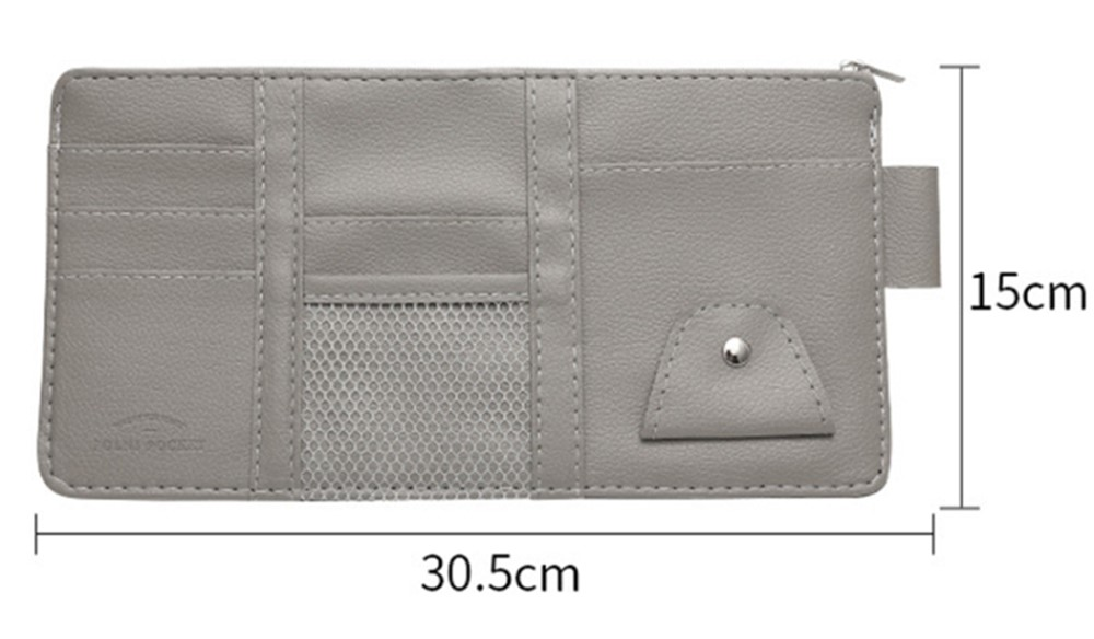 A rendszerező az autó napellenzőjére rögzíthető. Ideális iratok, kártyák, parkolójegyek és egyéb apró tárgyak tárolására.