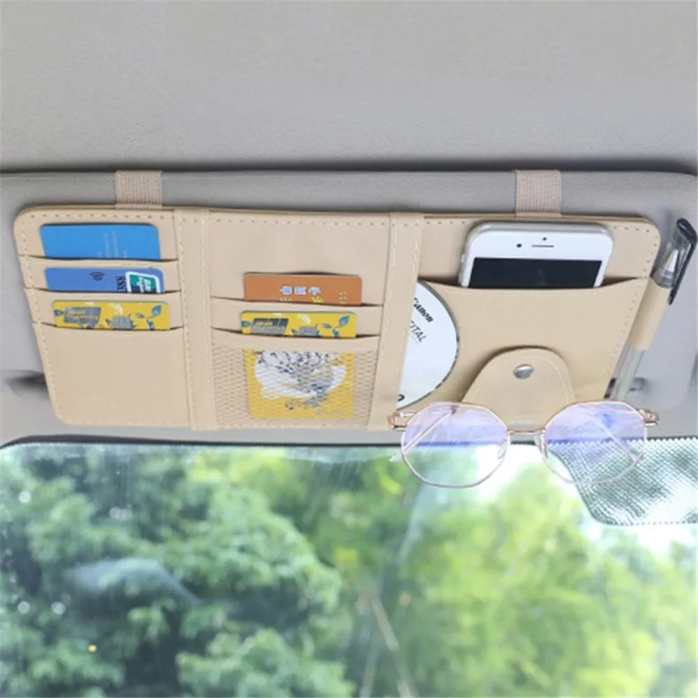 A rendszerező az autó napellenzőjére rögzíthető. Ideális iratok, kártyák, parkolójegyek és egyéb apró tárgyak tárolására.