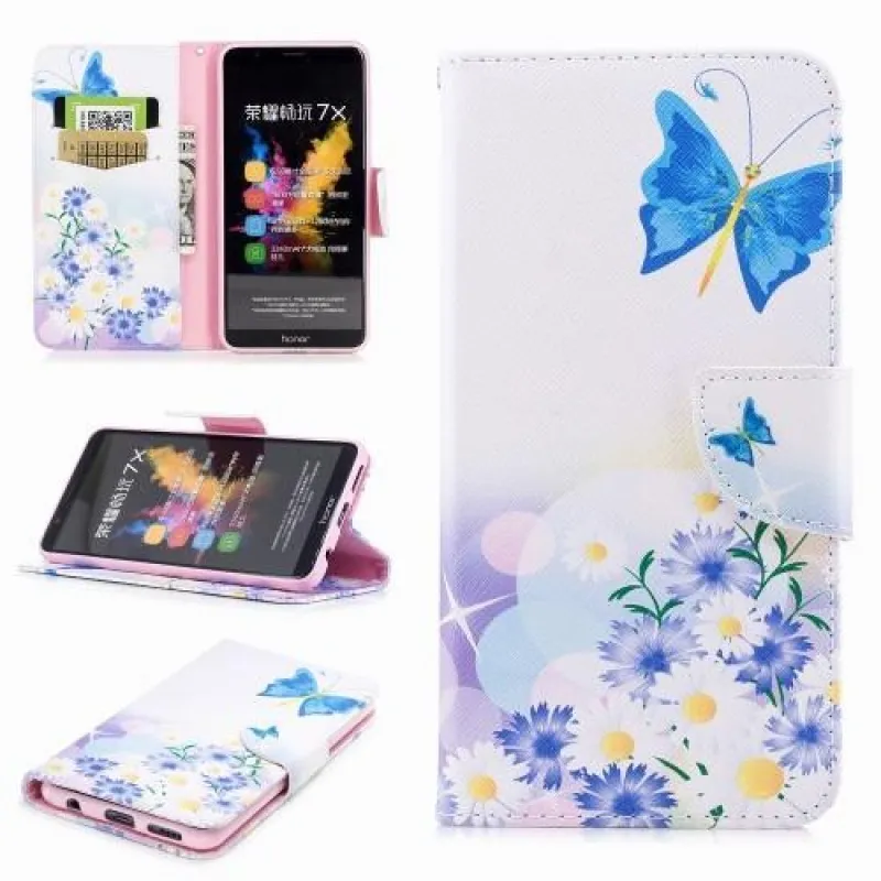 Emotive PU bőr tok a Honor 7X számára - virágok