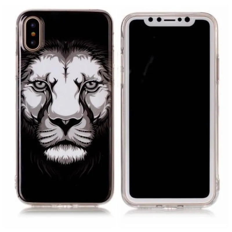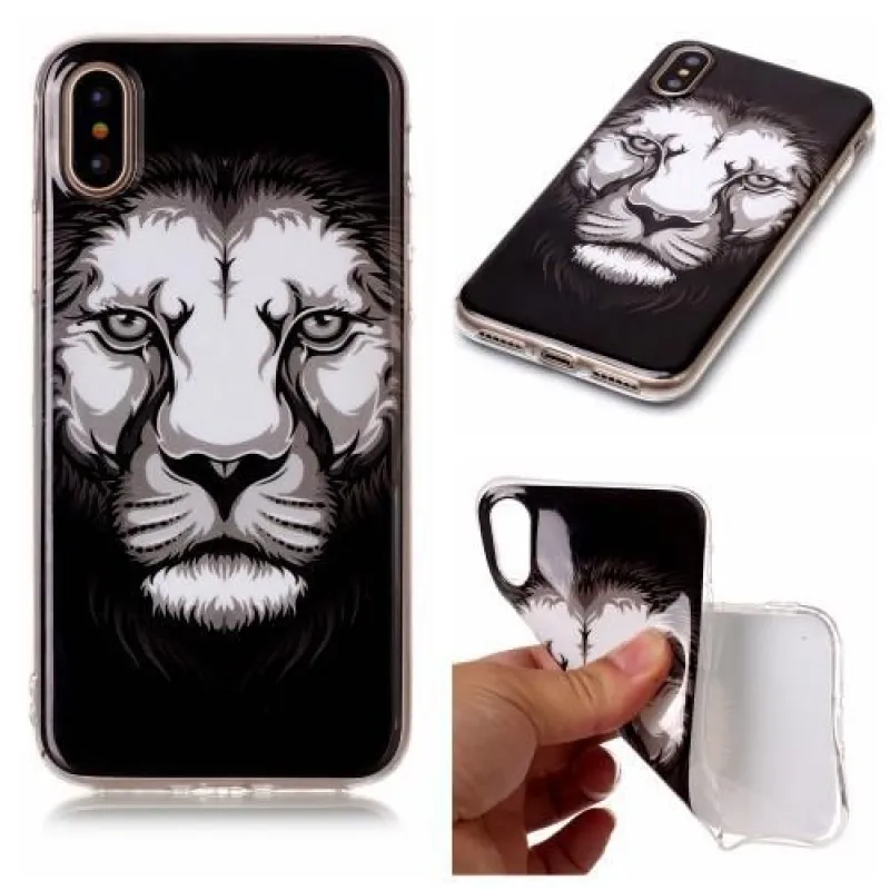 Zselés védőtok fekete-fehér oroszlánmotívummal iPhone X készülékhez