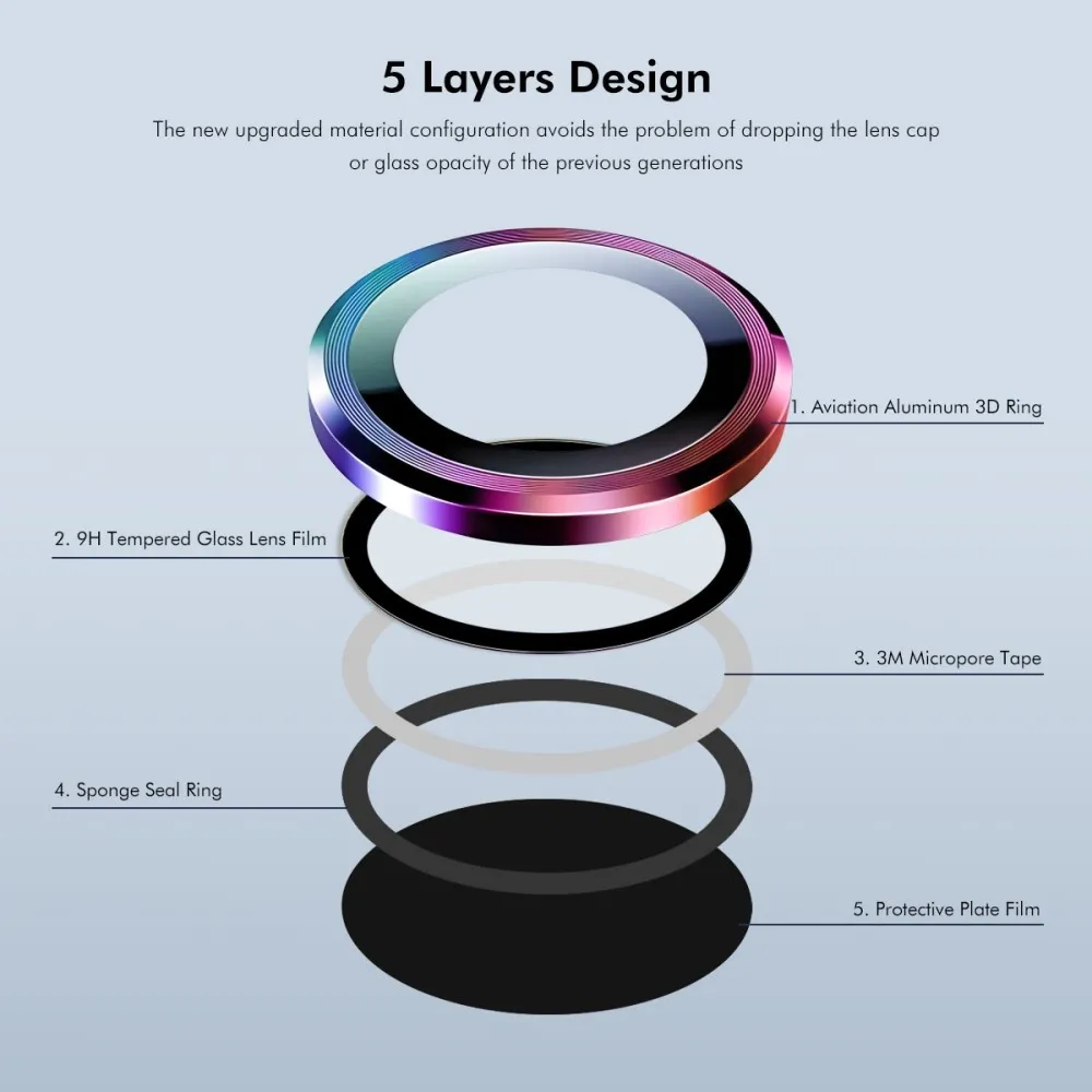 ✅Napi védelem: Ezek az egyedi gyűrűs tokok alumíniumötvözetből és 9H keménységű edzett üvegfóliából készülnek, extra védelmet nyújtva a kamera lencséjének.