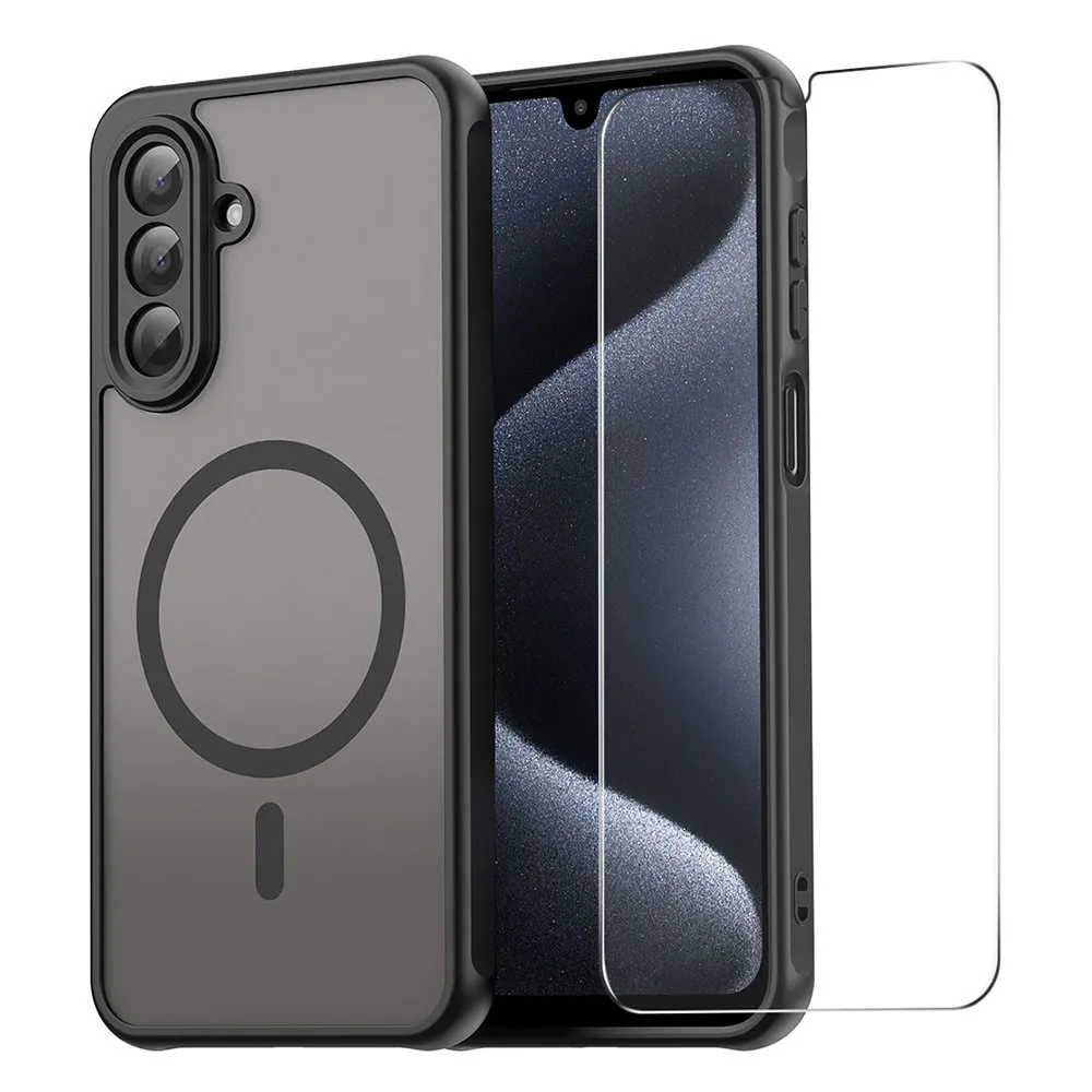 A praktikus ENKAY 2in1 tok edzett üveg és géltok kombinációja a MagSafe-fel, amelyet kifejezetten a Samsung Galaxy A17 4G/5G készülékhez terveztek. A félig átlátszó fekete borítás finoman színezett hátlappal kiemeli a telefon dizájnját, miközben rugalmas védelmet nyújt a hátlapnak és a sarkoknak. Az integrált mágneses gyűrű lehetővé teszi a MagSafe tartozékok kényelmes használatát és a vezeték nélküli töltést a borítás eltávolítása nélkül. A képernyővédő fólia és a tok kombinációja egy komplett megoldást hoz létre, amely a kicsomagolás után azonnal megvédi a kijelzőt és a telefon teljes burkolatát. ✅【Átfogó védelem】Az ENKAY tok és képernyővédő szett átfogó védelmet nyújt telefonjának, megvédve azt a karcolásoktól, esésektől és a mindennapi kopástól. ✅【MagSafe kompatibilis】A beépített erős mágneses gyűrű lehetővé teszi a gyorsabb és biztonságosabb töltést, és biztosítja a biztonságos illeszkedést, miközben megőrzi a készülék elegáns profilját. ✅【Félig átlátszó matt felület】A puha TPU keret + a félig átlátszó matt kemény PC hátlap stílusos megjelenést biztosít, miközben megőrzi a tapadást és ellenáll az ujjlenyomatoknak. ✅【Kiváló minőségű képernyővédő fólia】9H nagy keménységű edzett üveggel rendelkezik, nagy íves kialakítással a kijelző maximális lefedettsége és védelme érdekében. ✅【Kameravédelem és kijelző】A kiemelt keretek úgy lettek kialakítva, hogy magasabb, mint a telefon hátsó lencséje és előlapi kijelzője, így kiváló védelmet nyújt az ütések és leesések ellen.