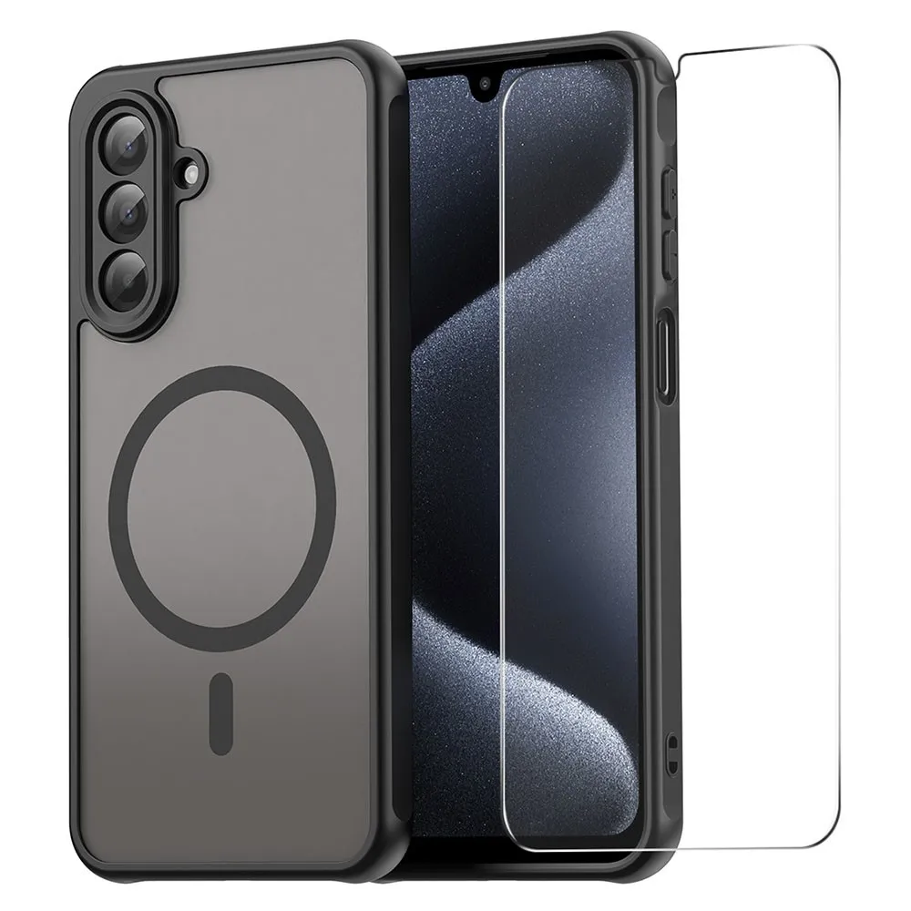 Fekete matt zselés borítás ENKAY MagSafe és edzett védőüveggel 9H Samsung Galaxy A26 5G számára