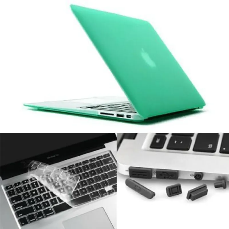 Enky szett matt műanyag tok, billentyűzetvédő és porvédő dugó MacBook Air 13.3 - zöld