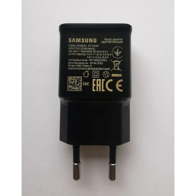 EP-TA200EBE Samsung USB-A 15W-os utazási töltő fekete (OOB Bulk)