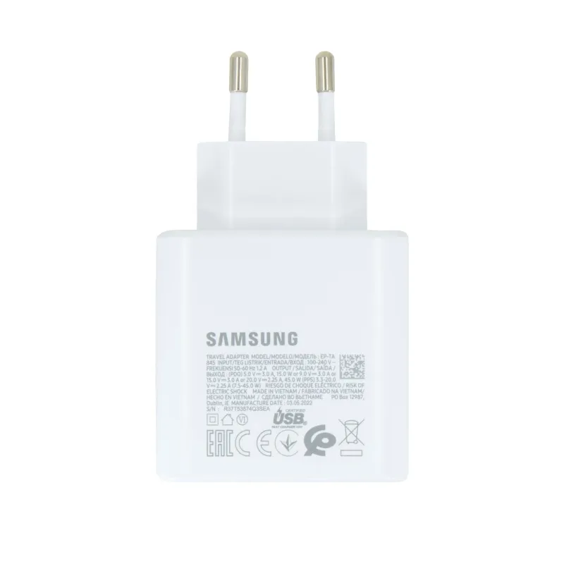 EP-TA845EWE Samsung Quickcharge USB-C 45W-os utazási töltő fehér (OOB Bulk)