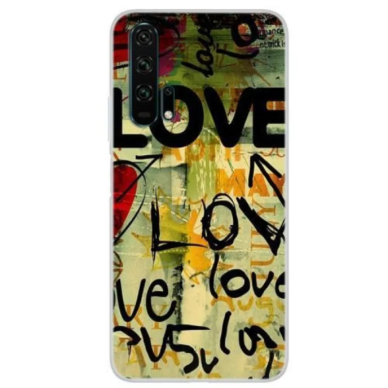 Érdekes szilikon tok Nyomtatás a Honor 20 Pro mobiltelefonhoz, szerelem feliratú motívummal