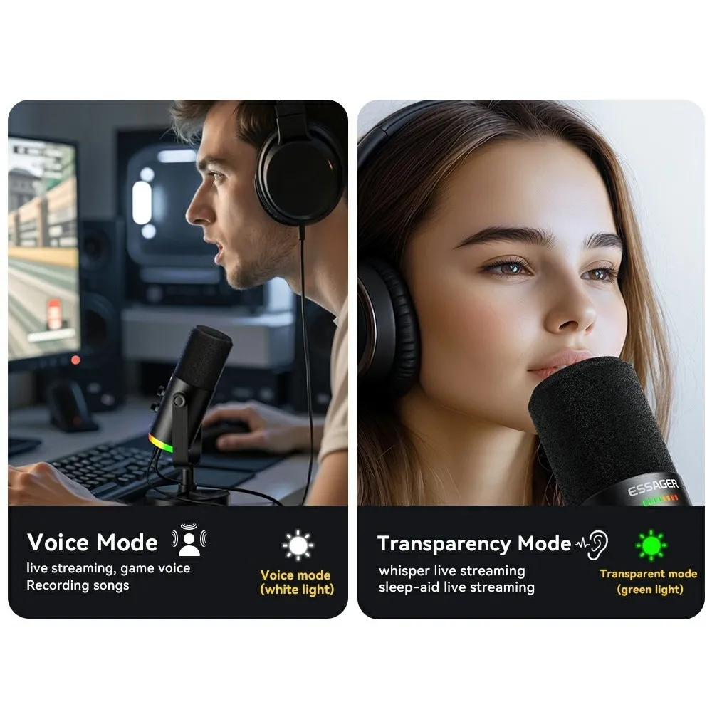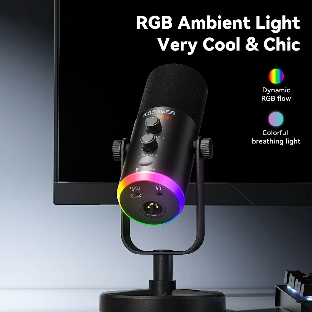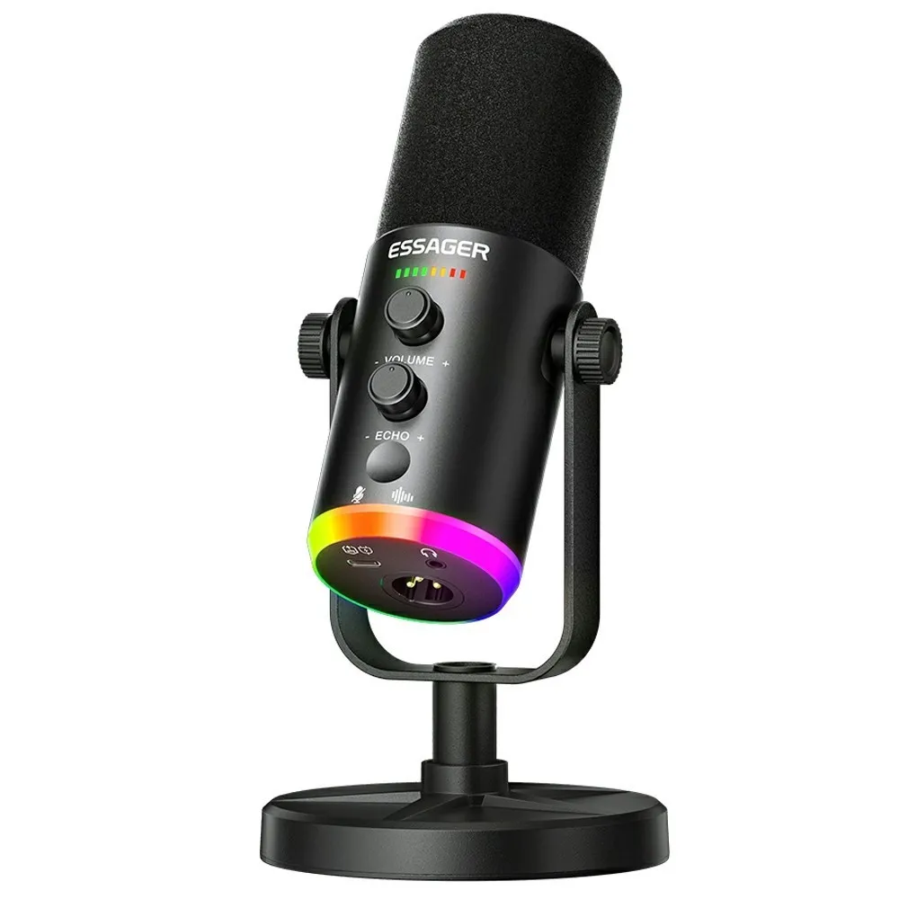 Essager asztali mikrofon XLR, USB-C és 3,5 mm csatlakozással és DSP zajcsökkentéssel univerzális megoldás kiváló hangrögzítéshez streameléshez, játékhoz, podcast készítéshez és online kommunikációhoz. A széles körű csatlakoztathatóságnak köszönhetően könnyen használható számítógéppel, audio interfésszel és egyéb eszközökkel.