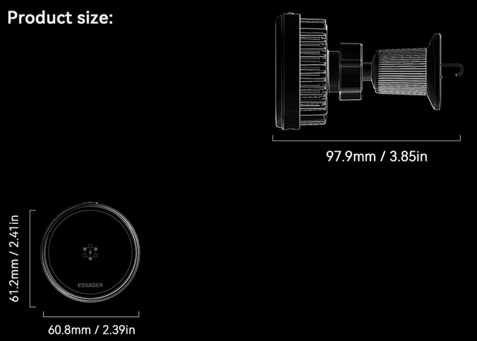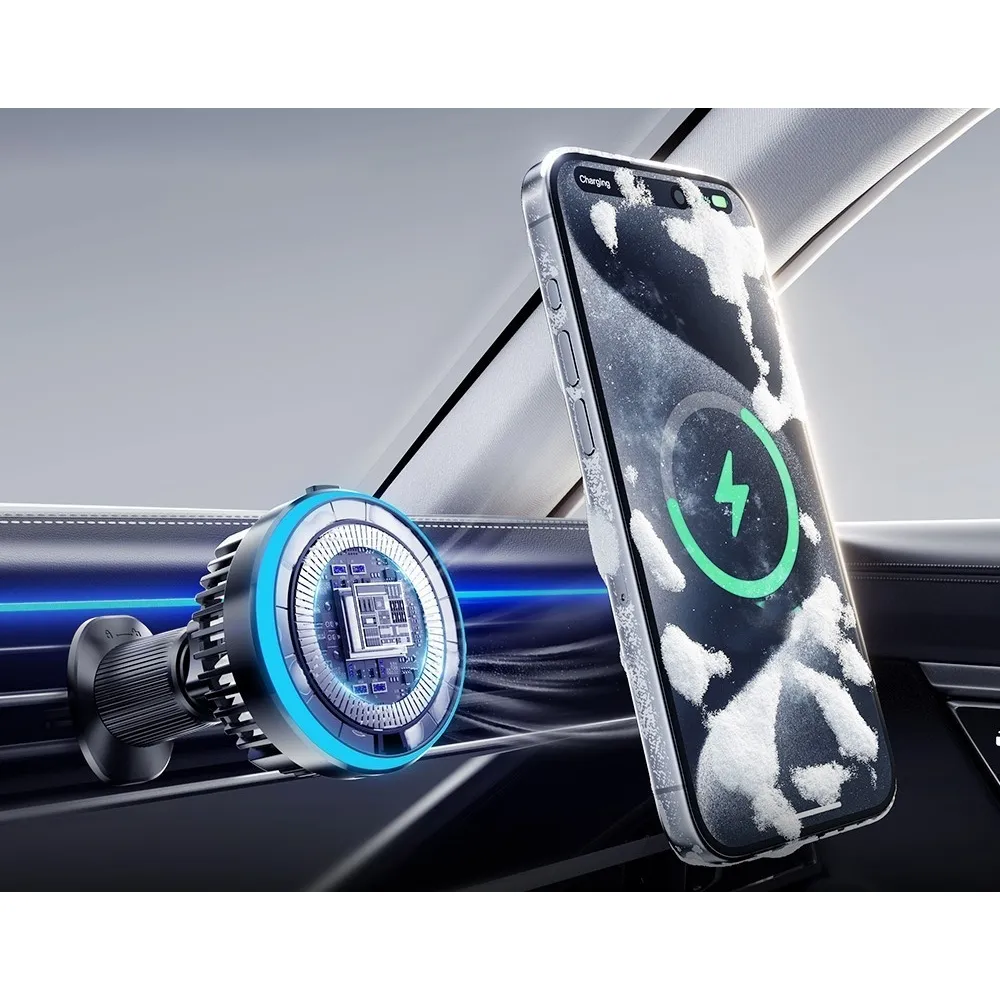 Essager mágneses autós vezeték nélküli töltő 15W hűtéssel és 360° forgással modern megoldás a telefon kényelmes töltésére vezetés közben. Az erős mágneses rögzítésnek köszönhetően a telefon stabilan a helyén marad, és egy kézzel is könnyen felhelyezhető vagy levehető.