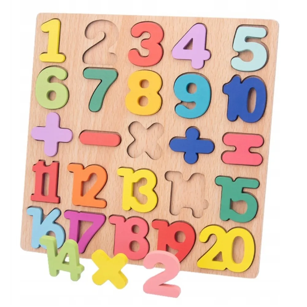 Számokkal díszített fa puzzle úgy lett kialakítva, hogy a gyerekek számára biztonságos, tartós és könnyen használható legyen. A masszív fa alap a kijelölt nyílásokkal segíti a darabok helyes elhelyezését, biztosítva, hogy minden elem pontosan a helyére illeszkedjen.