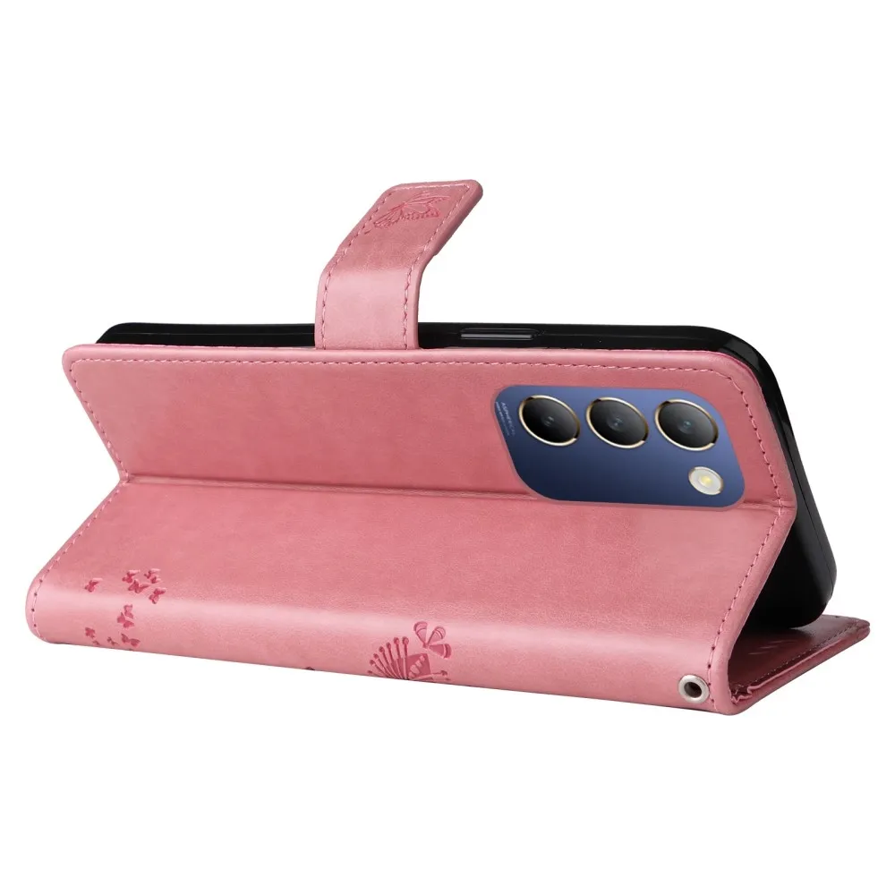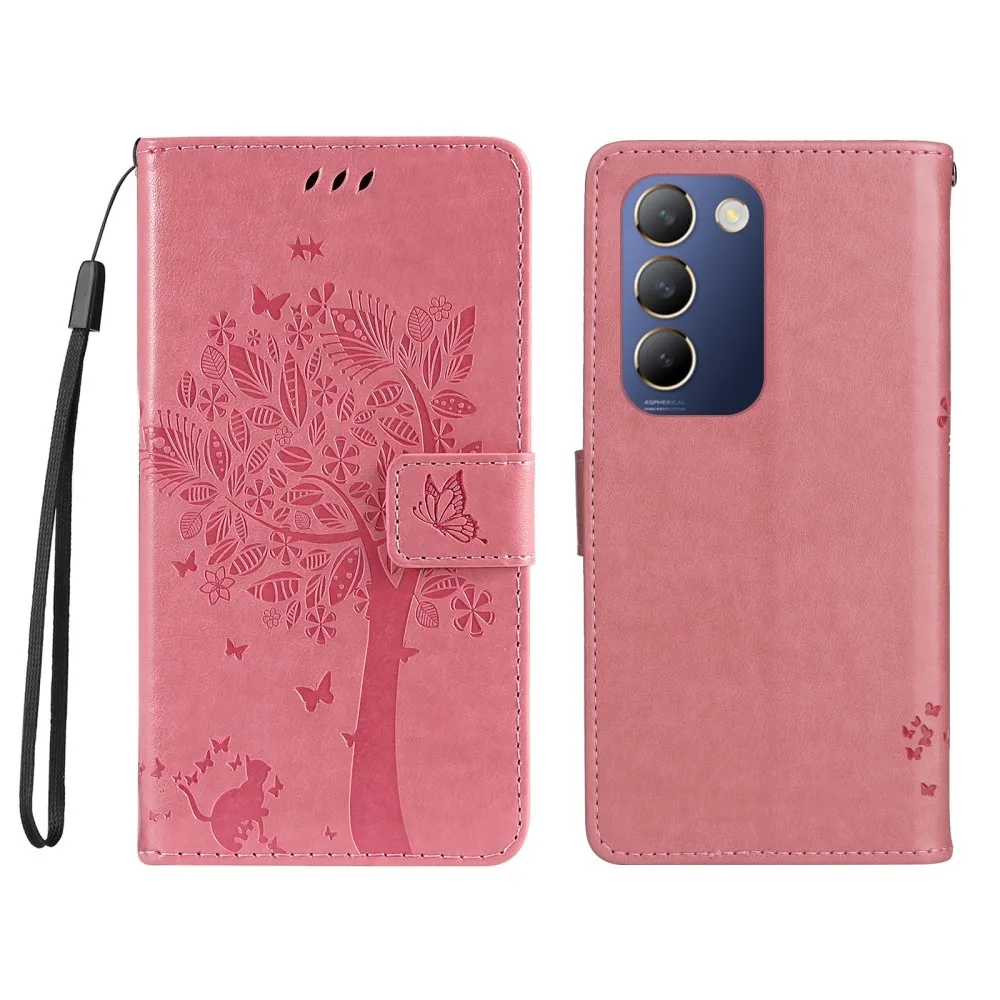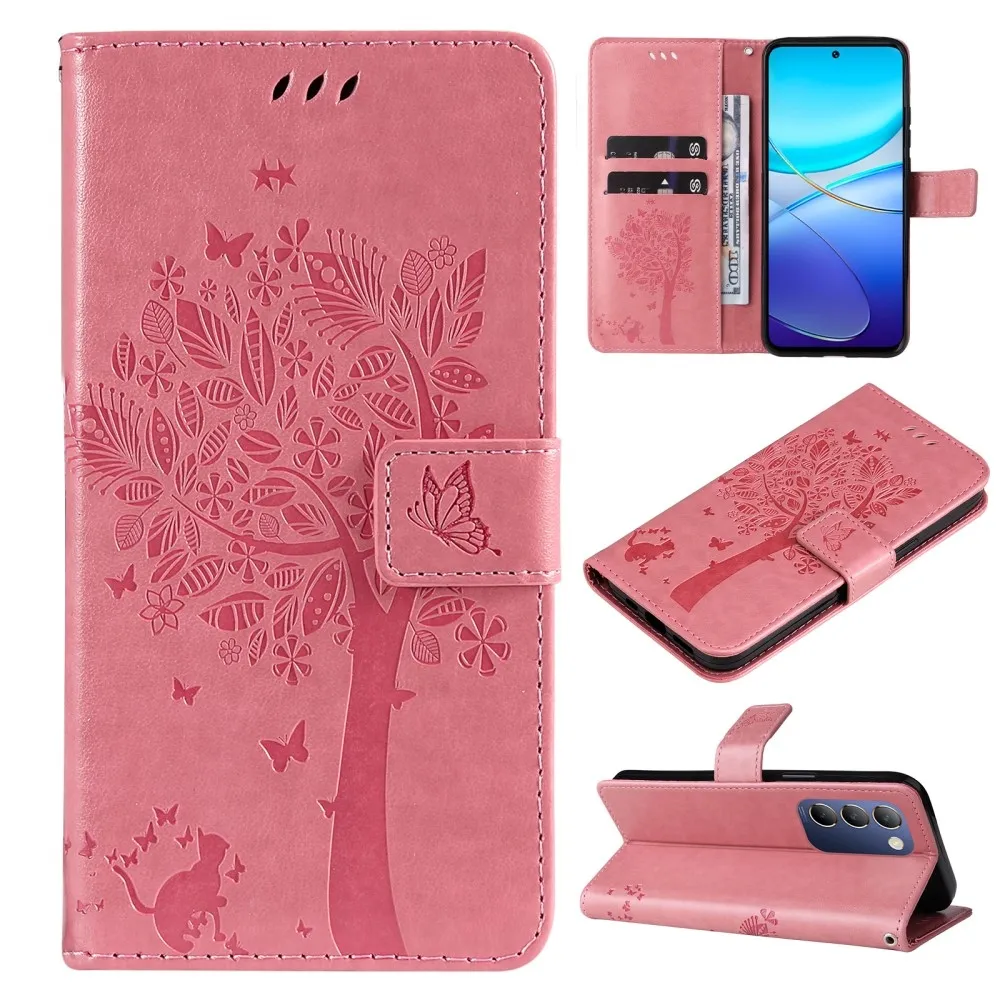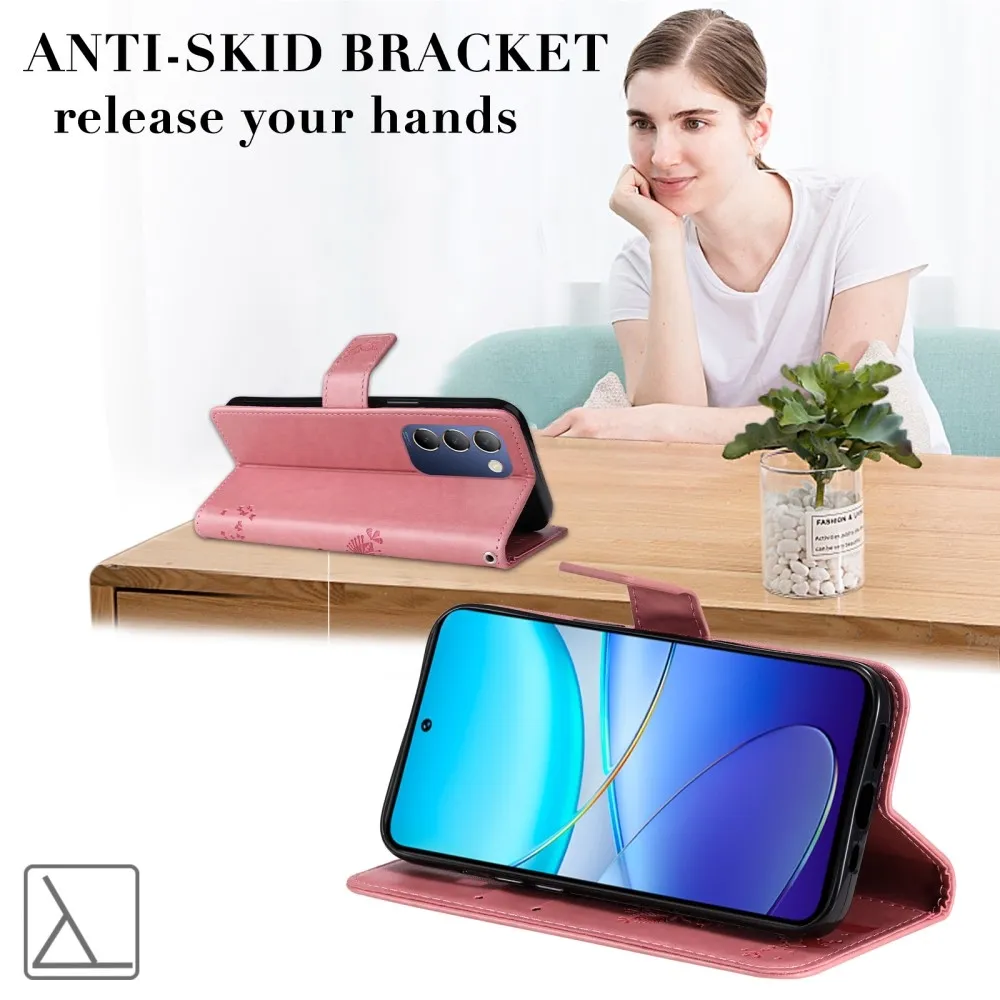Rózsaszín fa pénztárca tok a Vivo V40 SE 4G/5G számára