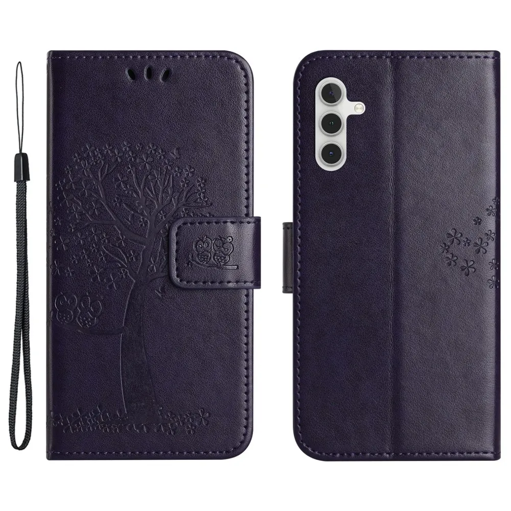 Sötétlila pénztárca tok Tree Samsung Galaxy A35 5G-hez