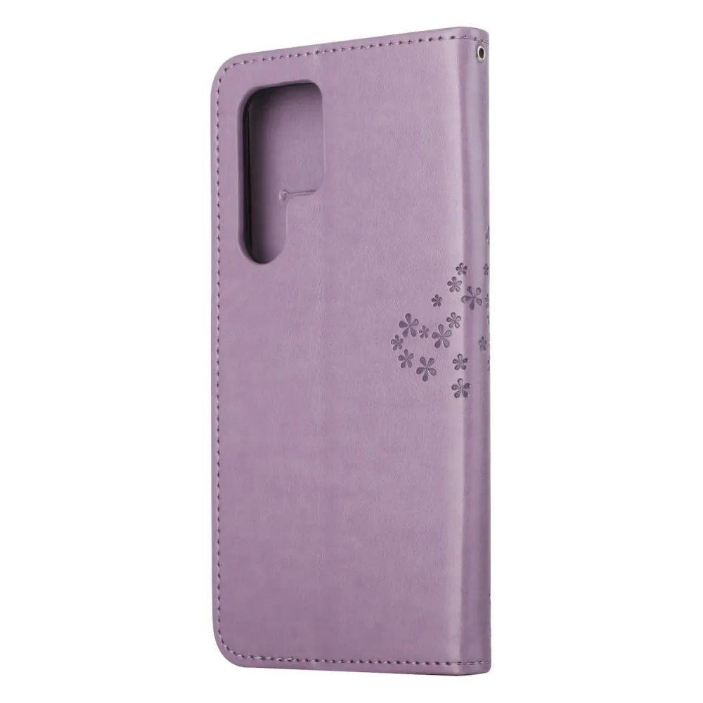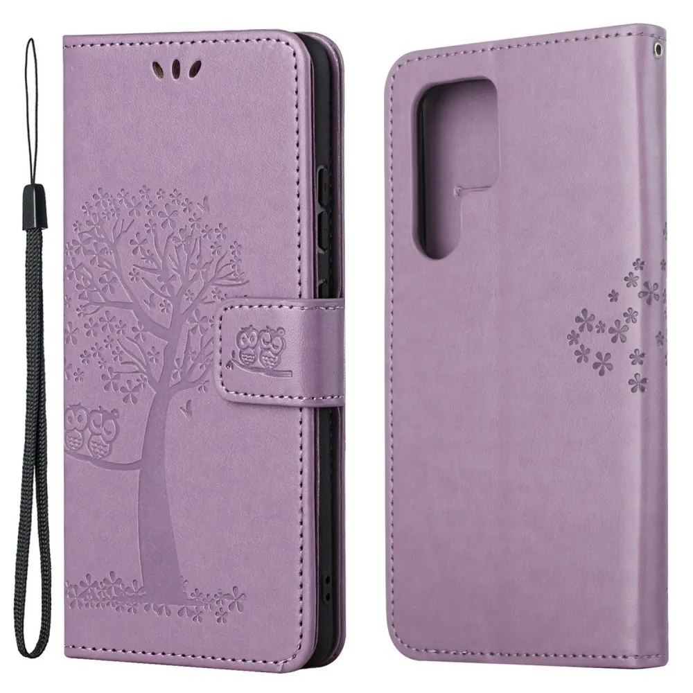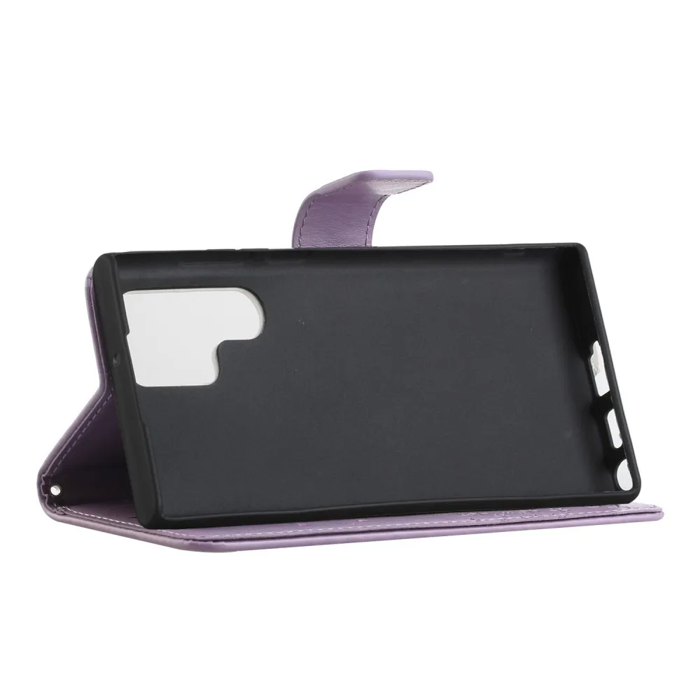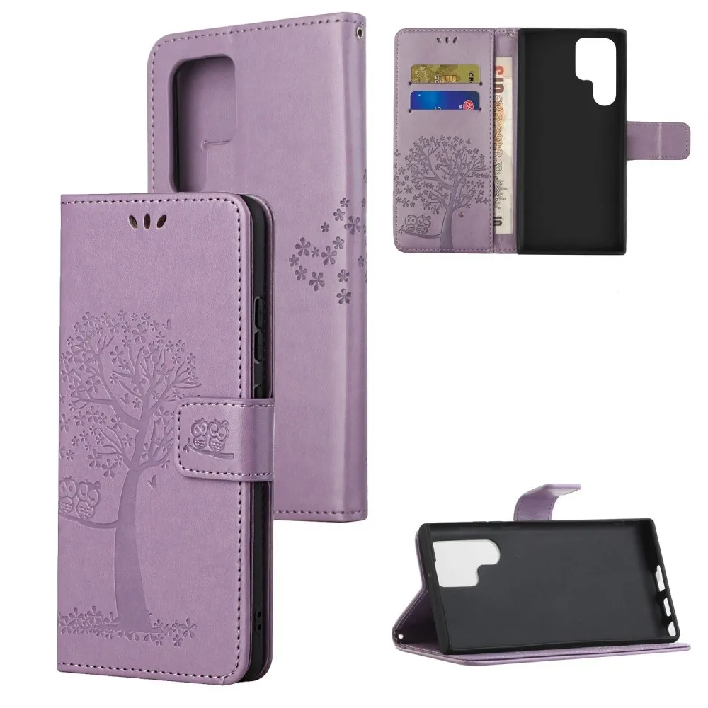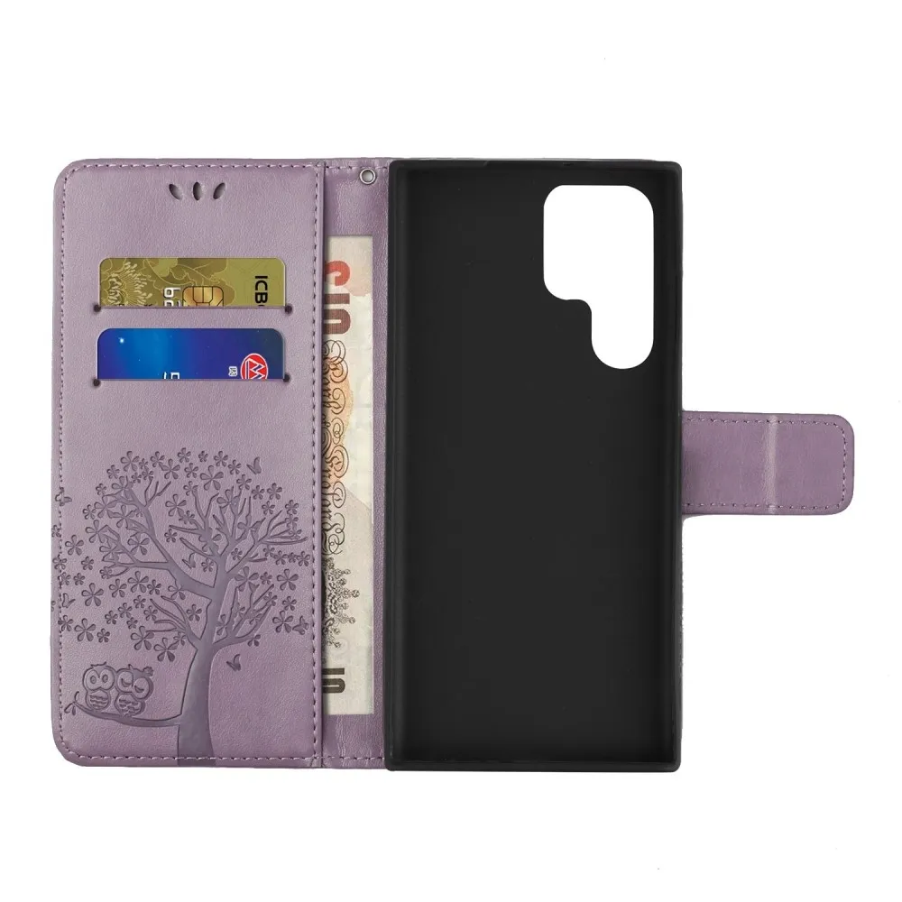 Világos lila pénztárca tok Tree Samsung Galaxy S24 Ultra számára