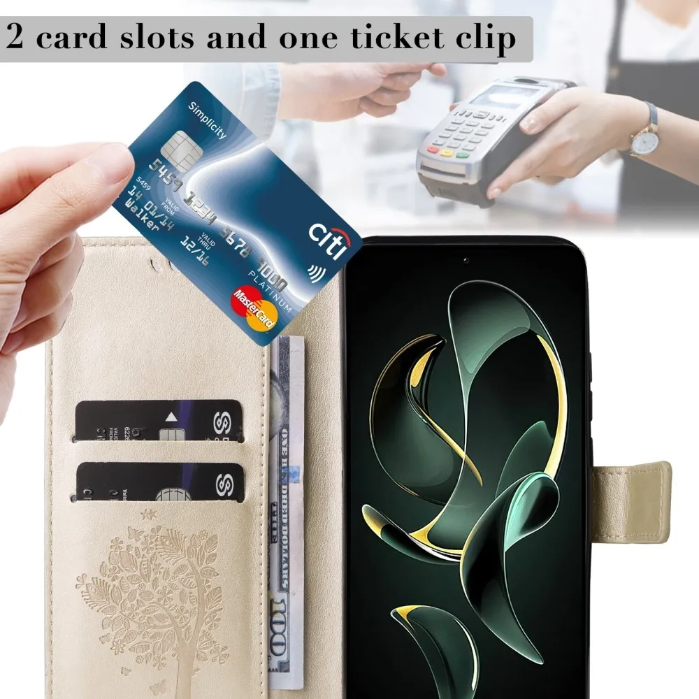 Arany pénztárca tok fa Xiaomi 13T/13T Pro számára