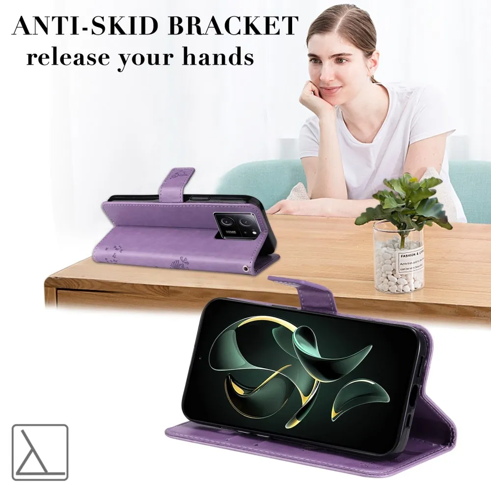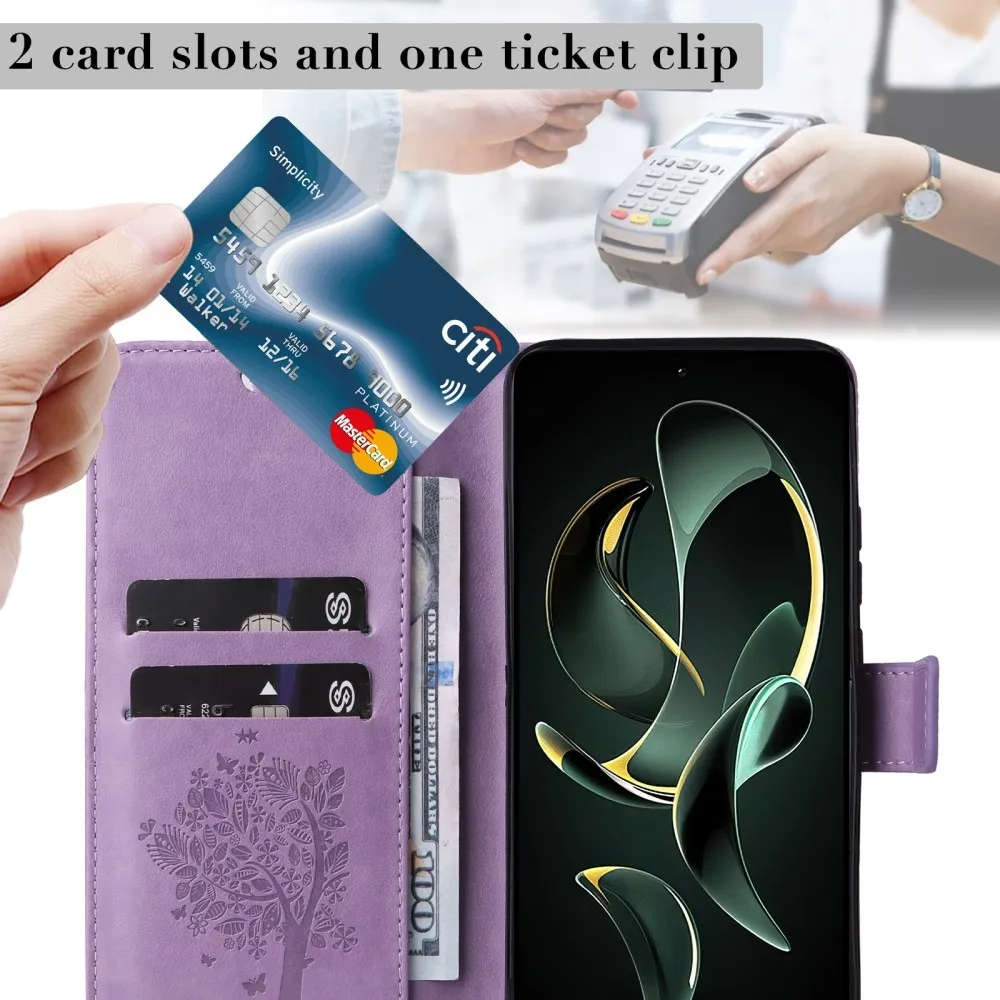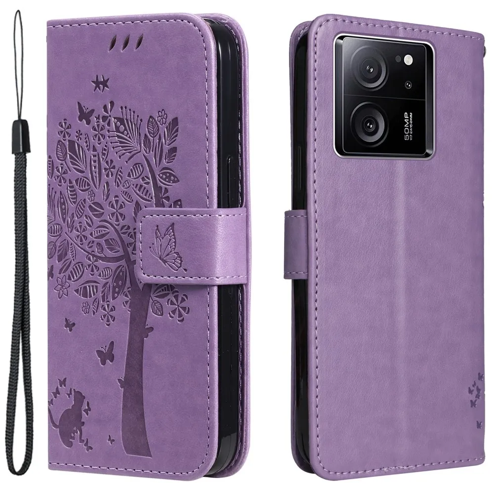 Világos lila pénztárca tok fa Xiaomi 13T/13T Pro számára