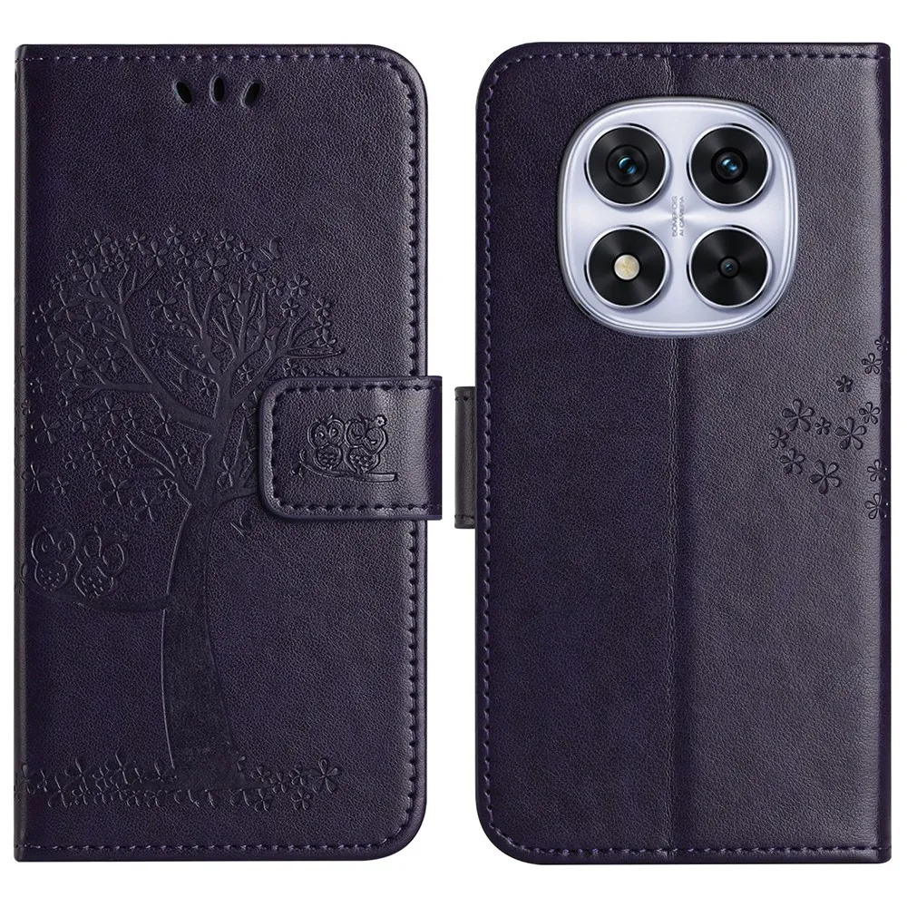 Sötét lila fa pénztárca tok Xiaomi Redmi Note 14 Pro 5G/Poco X7 5G/Note 14 Pro+ 5G számára