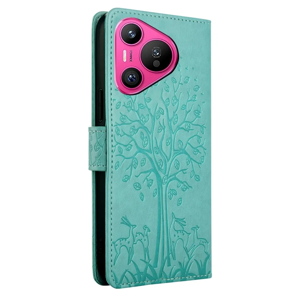 Kék-zöld pénztárca tok fa mobil Huawei Pura 70