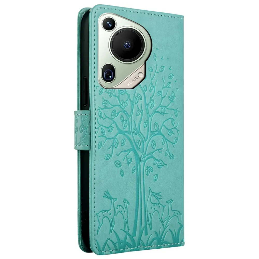 Kék-zöld pénztárca tok fa mobil Huawei Pura 70 Ultra mobilhoz