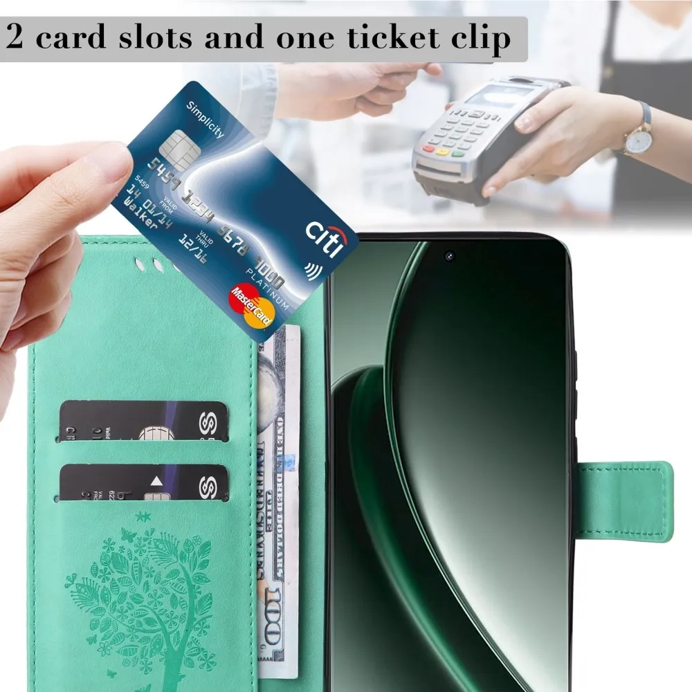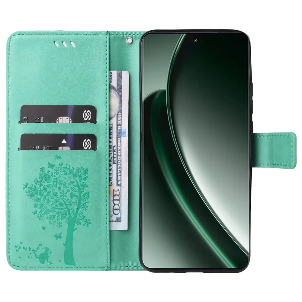 Kék-zöld pénztárca tok Fa a Realme GT 6 5G/GT 6T 5G számára