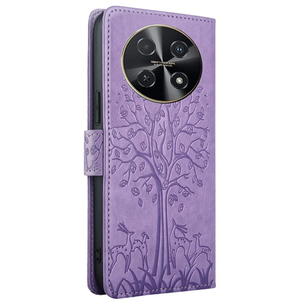 Lila pénztárca tok fa Huawei Nova 12i számára