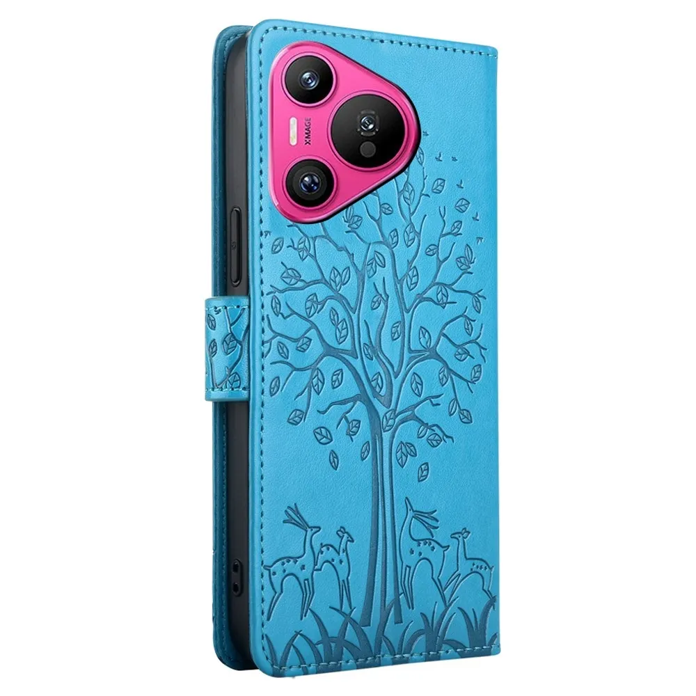 Kék pénztárca tok fa mobil Huawei Pura 70 mobilhoz