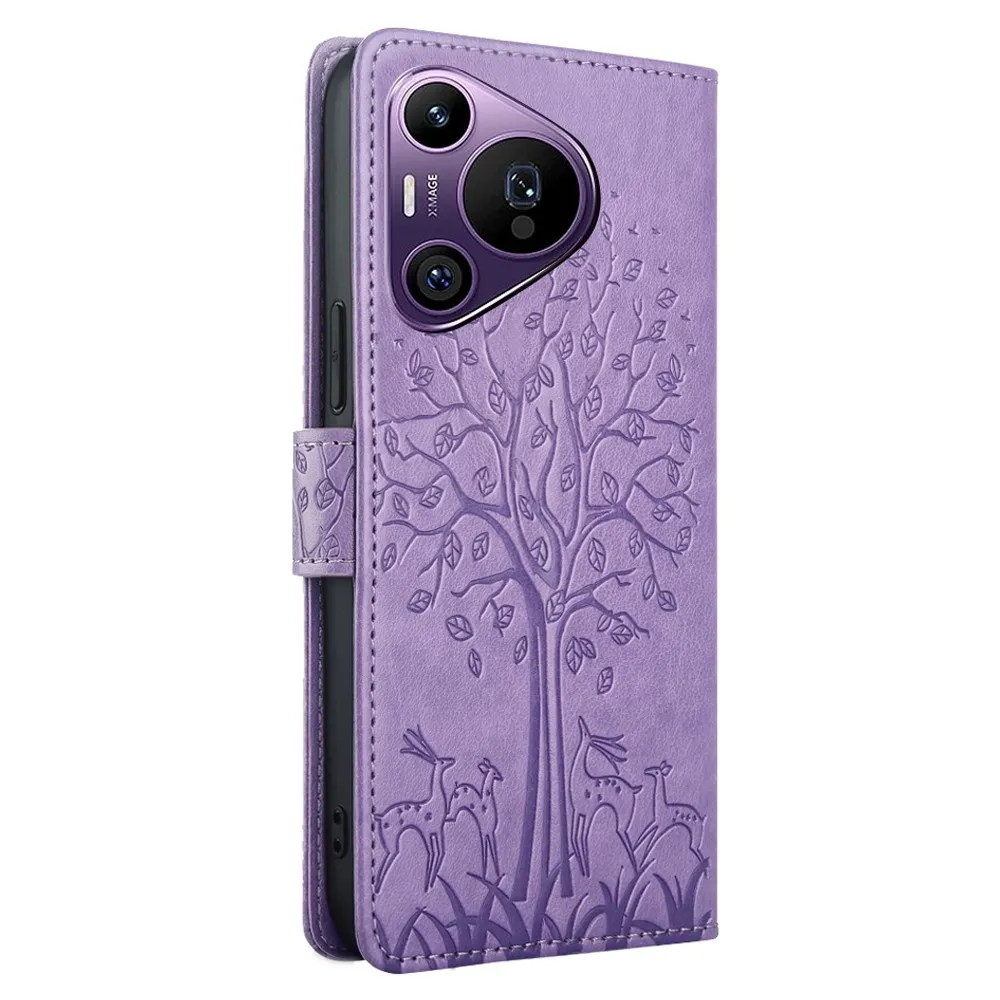 Lila pénztárca tok fa mobil Huawei Pura 70 Pro mobilhoz