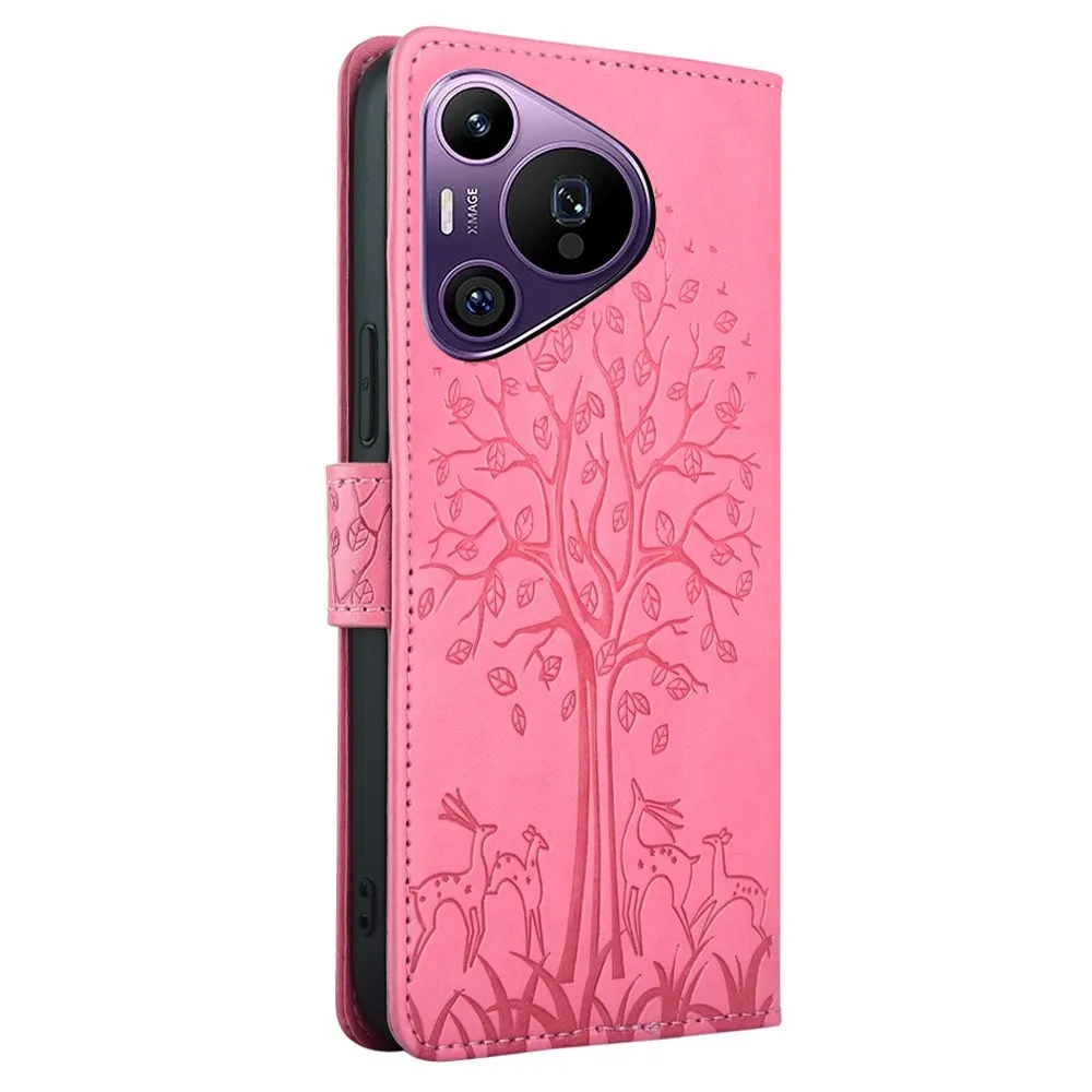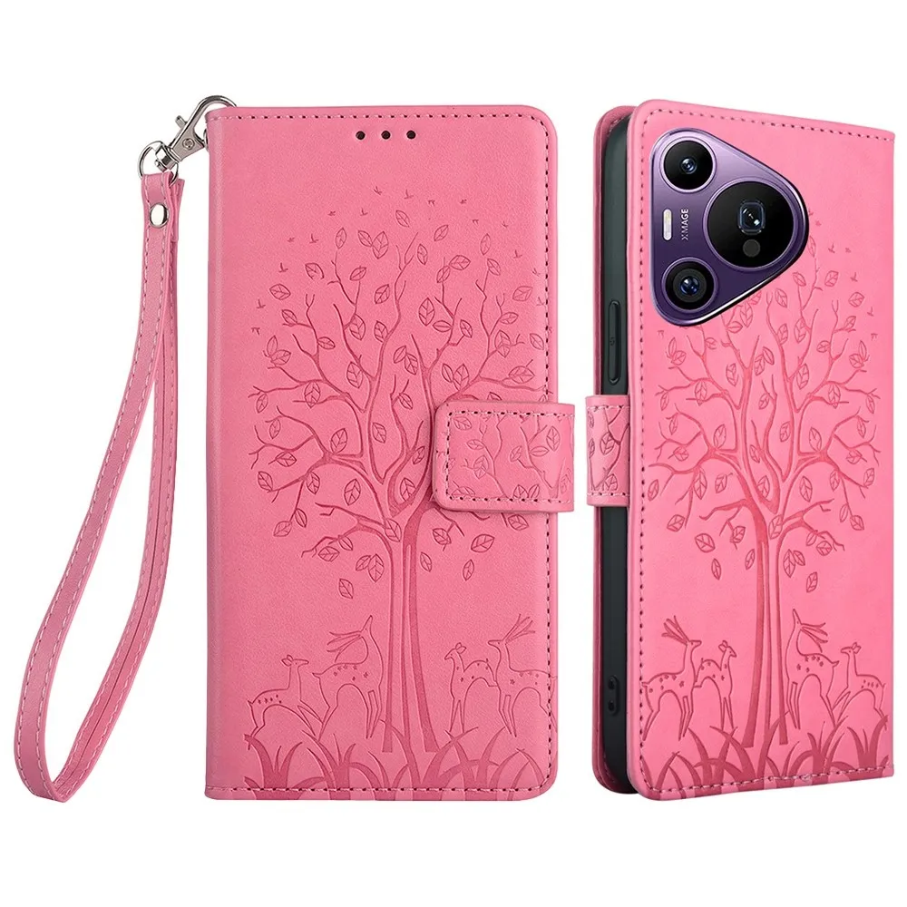 Rózsaszín pénztárca tok fa mobil Huawei Pura 70 Pro számára
