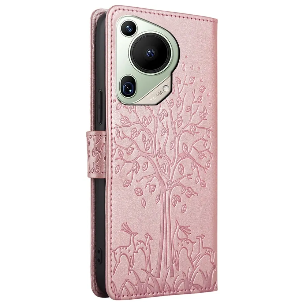 Rózsa arany pénztárca tok fa mobil Huawei Pura 70 Ultra számára