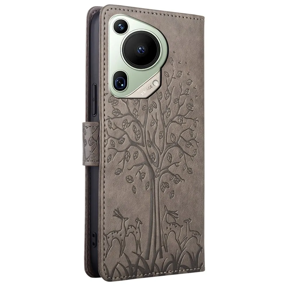 Szürke pénztárca tok fa Huawei Pura 70 Ultra számára
