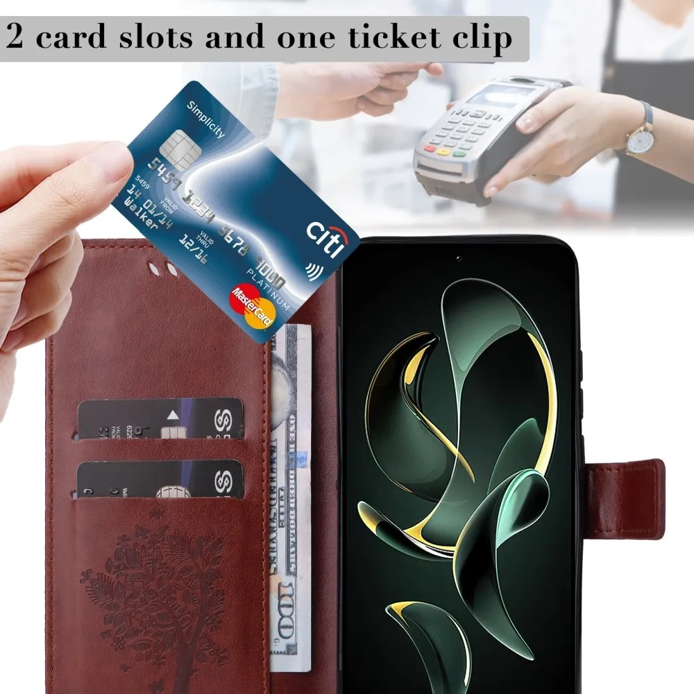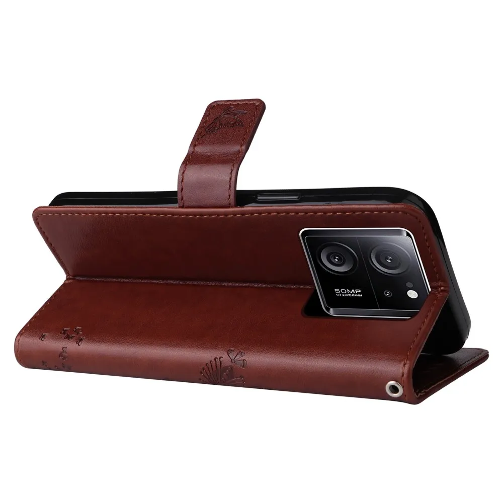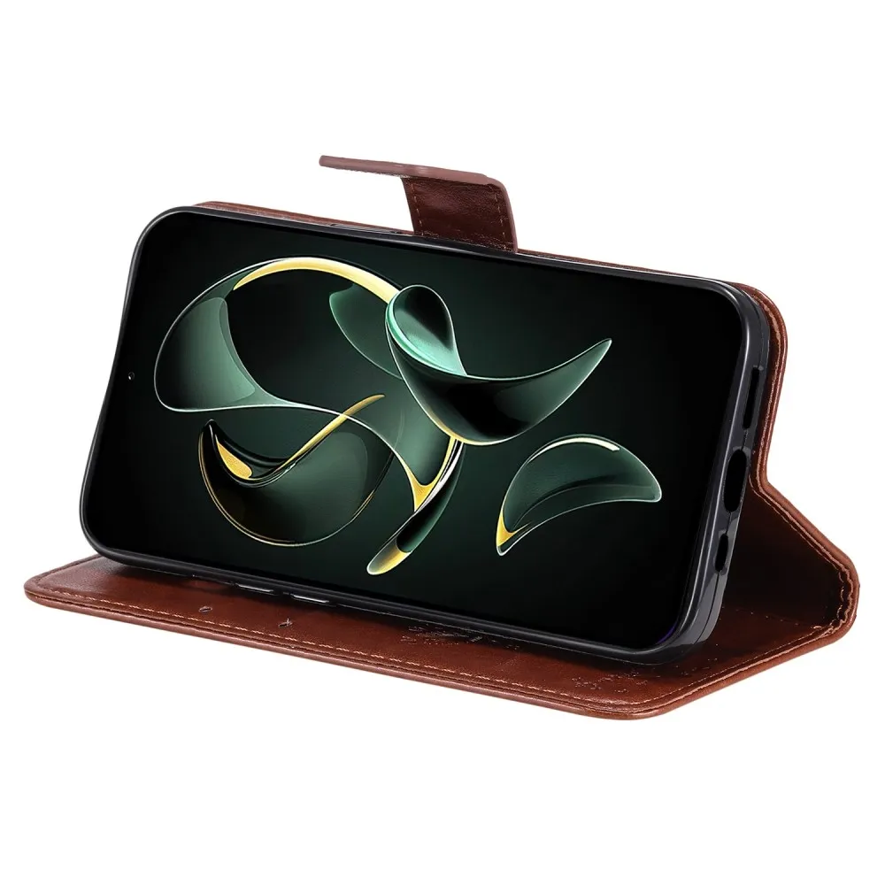 Barna pénztárca tok fa Xiaomi 13T/13T Pro számára