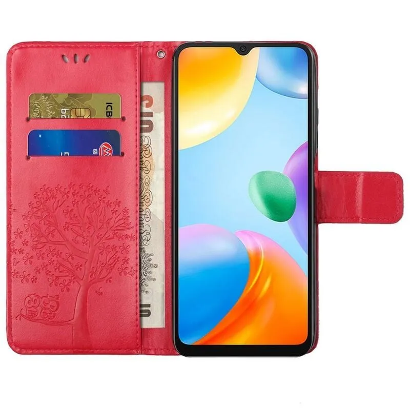 Piros könyv tok fa Xiaomi Redmi 10C számára