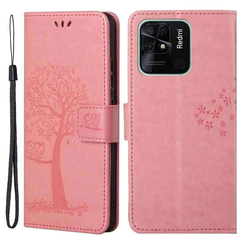 Rózsaszín könyv tok fa Xiaomi Redmi 10C-hez