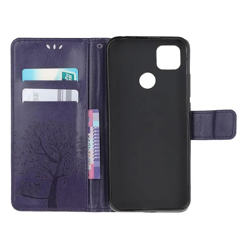 Sötét lila könyv tok fa Xiaomi Redmi 9C-hez