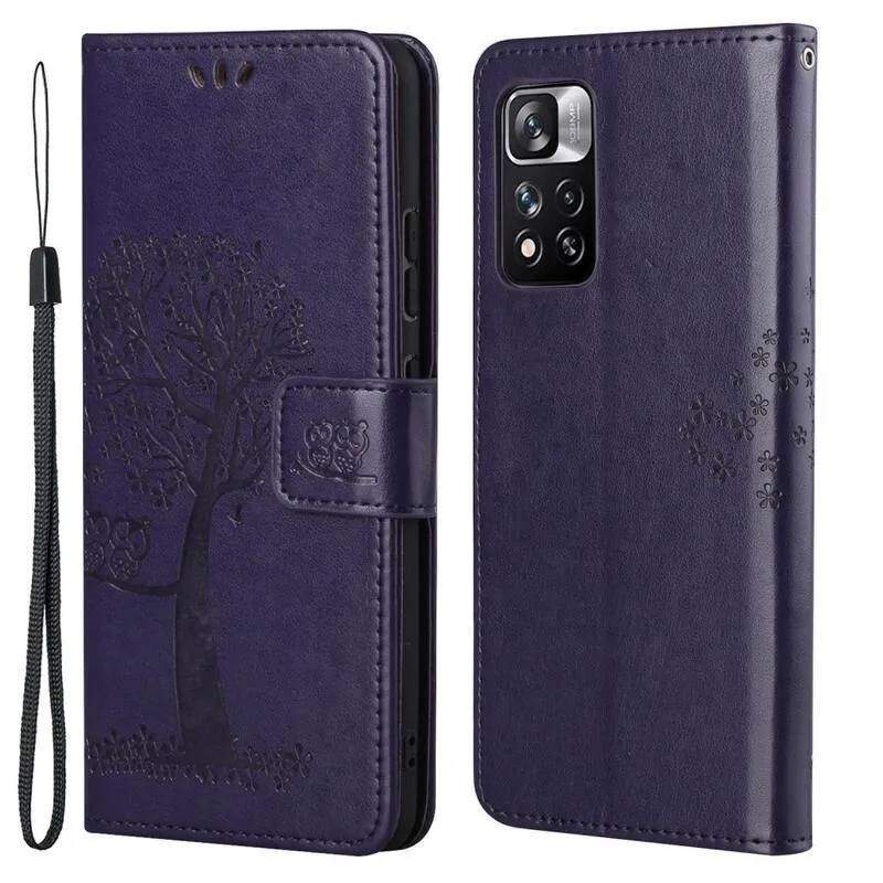 Sötét lila könyv tok fa Xiaomi Redmi Note 11 Pro 4G-hez