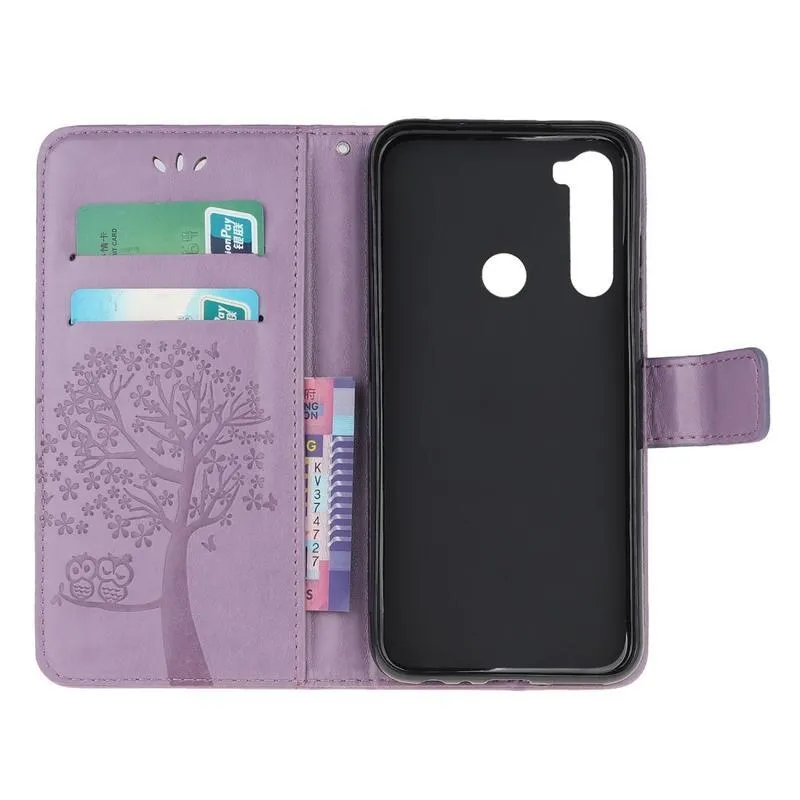 Világos lila könyv tok fa Xiaomi Redmi Note 8T-hez