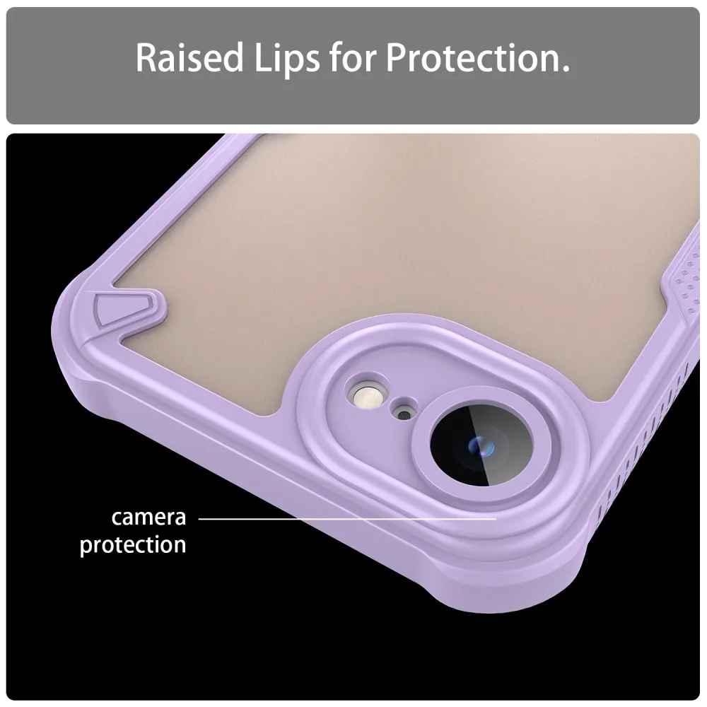 ✅【Tartós és könnyű konstrukció】A iPhone 16e lila matt keménytokja kemény PC-ből és puha TPU-ból készült. A tok tartós és könnyű, strapabíró védelmet nyújt anélkül, hogy növelné a telefon súlyát. ✅【Gél peremű】 TPU tömör, puha peremű, sztereó gombokkal, kényelmes fogást biztosít, biztonságos fogást biztosít és csökkenti a véletlen leejtések kockázatát. ✅【Megerősített sarkok】 A négyszögletes légzsákos kialakítás fokozott védelmet nyújt, és javítja a készülék ütés- és leejtésállóságát. ✅【Kamera- és képernyővédelem】 Az 1 mm-es megemelt perem a kamera és a képernyő körül maximális védelmet nyújt a karcolások és leejtések ellen. ✅【Stílusos és praktikus kialakítás】 A félig átlátszó matt felület nemcsak a telefon esztétikáját fokozza, hanem ellenáll az ujjlenyomatoknak és a foltoknak is, így a telefon elegáns megjelenésű. ✅【Precíz kivágások a könnyű hozzáférés érdekében】A precíz kivágásoknak köszönhetően a tok könnyű hozzáférést biztosít az összes gombhoz, porthoz és kamerához, így a tok eltávolítása nélkül is biztosítható a teljes funkcionalitás.