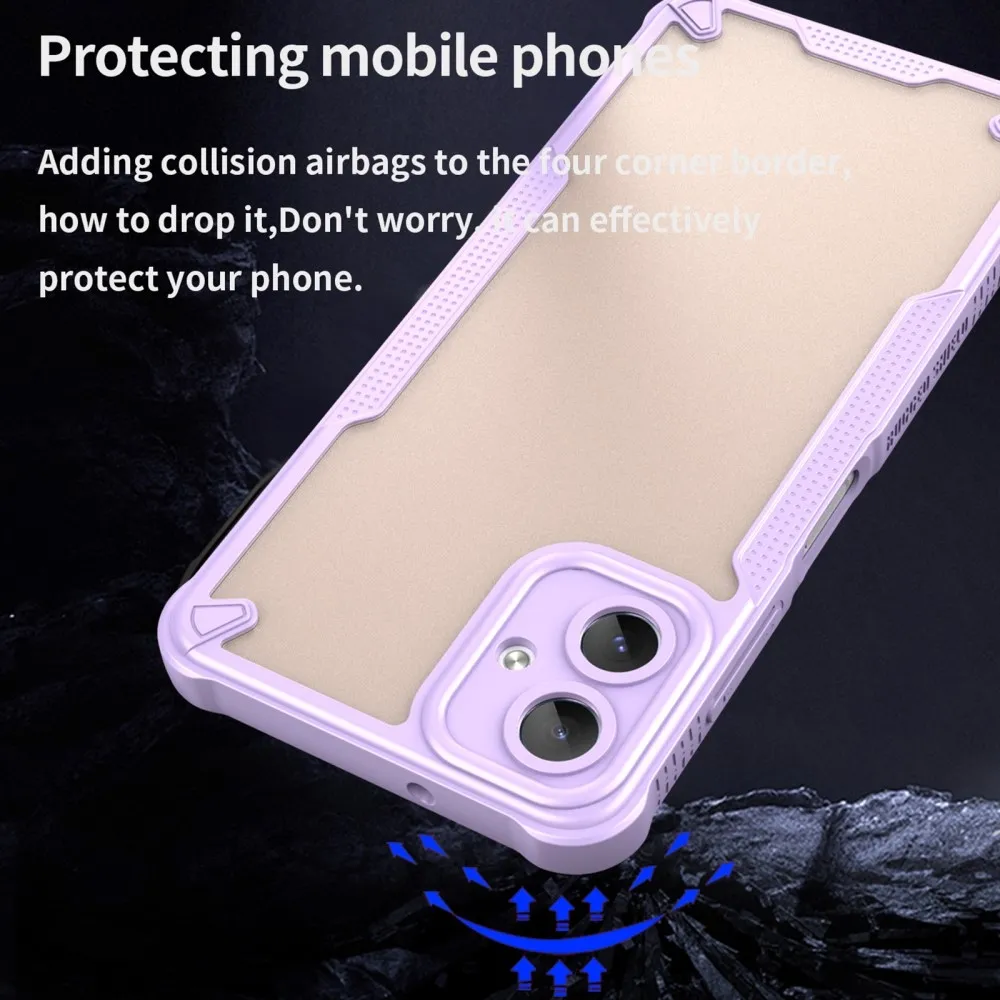 ✅【Tartós és könnyű konstrukció】A Samsung Galaxy A06 4G lila matt keménytokja kemény PC-ből és puha TPU-ból készült. A tok tartós és könnyű, strapabíró védelmet nyújt anélkül, hogy növelné a telefon súlyát. ✅【Gél peremű】 TPU tömör, puha peremű, sztereó gombokkal, kényelmes fogást biztosít, biztonságos fogást biztosít és csökkenti a véletlen leejtések kockázatát. ✅【Megerősített sarkok】 A négyszögletes légzsákos kialakítás fokozott védelmet nyújt, és javítja a készülék ütés- és leejtésállóságát. ✅【Kamera- és képernyővédelem】 Az 1 mm-es megemelt perem a kamera és a képernyő körül maximális védelmet nyújt a karcolások és leejtések ellen. ✅【Stílusos és praktikus kialakítás】 A félig átlátszó matt felület nemcsak a telefon esztétikáját fokozza, hanem ellenáll az ujjlenyomatoknak és a foltoknak is, így a telefon elegáns megjelenésű. ✅【Precíz kivágások a könnyű hozzáférés érdekében】A precíz kivágásoknak köszönhetően a tok könnyű hozzáférést biztosít az összes gombhoz, porthoz és kamerához, így a tok eltávolítása nélkül is biztosítható a teljes funkcionalitás.