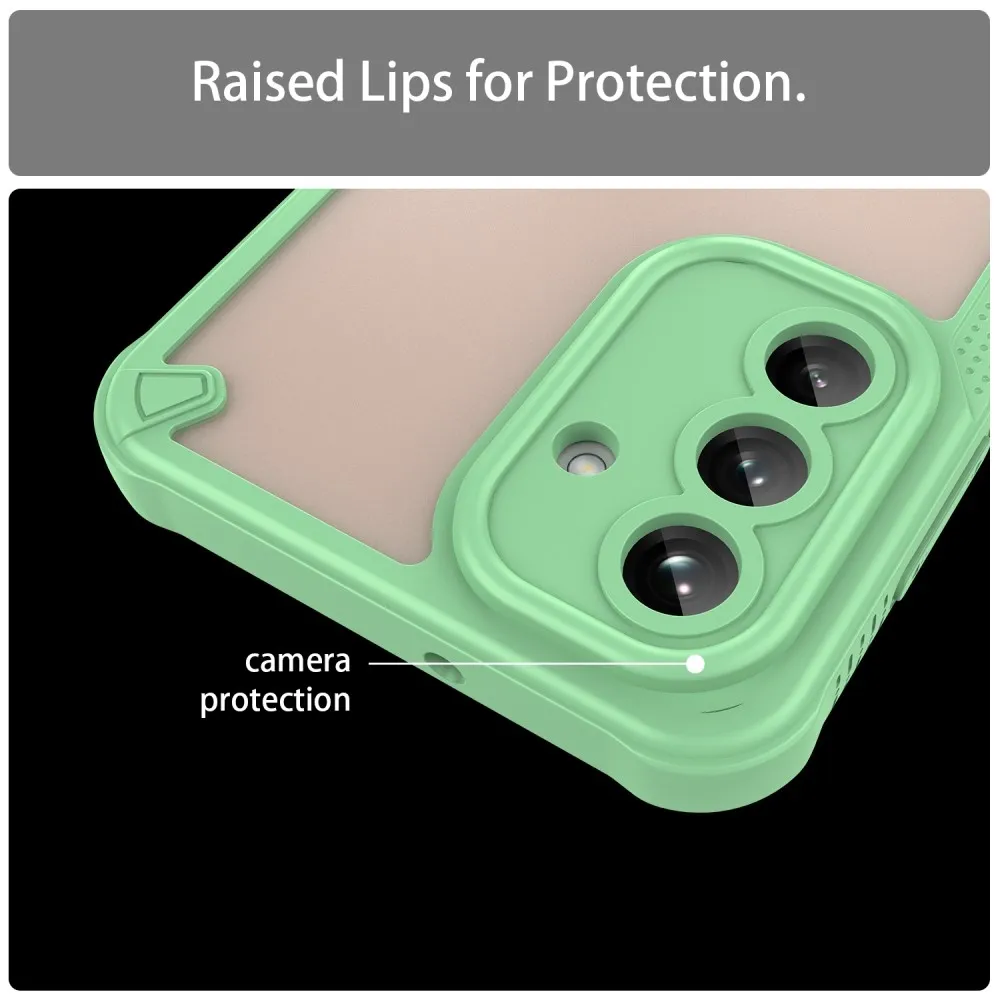 ✅【Tartós és könnyű konstrukció】A Samsung Galaxy A26 5G matt zöld színű tokja kemény PC-ből és puha TPU-ból készült. A tok tartós és könnyű, strapabíró védelmet nyújt anélkül, hogy növelné a telefon súlyát. ✅【Gél peremű】 TPU tömör, puha peremű, sztereó gombokkal, kényelmes fogást biztosít, biztonságos fogást biztosít és csökkenti a véletlen leejtések kockázatát. ✅【Megerősített sarkok】 A négyszögletes légzsákos kialakítás fokozott védelmet nyújt, és javítja a készülék ütés- és leejtésállóságát. ✅【Kamera- és képernyővédelem】 Az 1 mm-es megemelt perem a kamera és a képernyő körül maximális védelmet nyújt a karcolások és leejtések ellen. ✅【Stílusos és praktikus kialakítás】 A félig átlátszó matt felület nemcsak a telefon esztétikáját fokozza, hanem ellenáll az ujjlenyomatoknak és a foltoknak is, így a telefon elegáns megjelenésű. ✅【Precíz kivágások a könnyű hozzáférés érdekében】A precíz kivágásoknak köszönhetően a tok könnyű hozzáférést biztosít az összes gombhoz, porthoz és kamerához, így a tok eltávolítása nélkül is biztosítható a teljes funkcionalitás.
