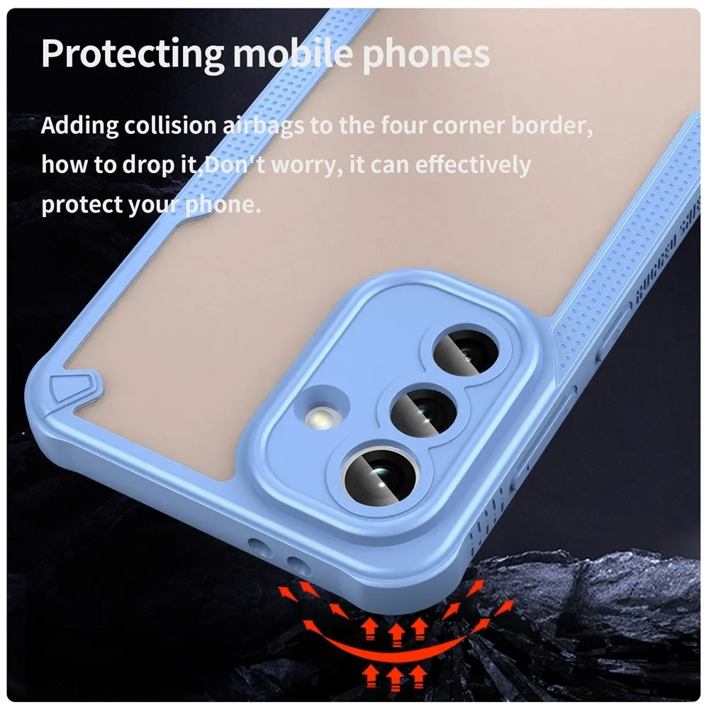 ✅【Tartós és könnyű konstrukció】A Samsung Galaxy A37 5G készülékhez készült matt keménytok kék színben, kemény PC-ből és puha TPU-ból készült. A tok tartós és könnyű, strapabíró védelmet nyújt anélkül, hogy növelné a telefon méreteit. ✅【Gél peremű】 TPU tömör, puha peremű, sztereó gombokkal, kényelmes fogást biztosít, biztonságos fogást biztosít és csökkenti a véletlen leejtések kockázatát. ✅【Megerősített sarkok】 A négyszögletes légzsákos kialakítás fokozott védelmet nyújt, és javítja a készülék ütés- és leejtésállóságát. ✅【Kamera- és képernyővédelem】 Az 1 mm-es megemelt perem a kamera és a képernyő körül maximális védelmet nyújt a karcolások és az esések ellen. ✅【Stílusos és praktikus kialakítás】 A félig átlátszó matt felület nemcsak a telefon esztétikáját fokozza, hanem ellenáll az ujjlenyomatoknak és a foltoknak is, így a telefon elegáns megjelenésű. ✅【Precíz kivágások a könnyű hozzáférés érdekében】A precíz kivágásoknak köszönhetően a tok könnyű hozzáférést biztosít az összes gombhoz, porthoz és kamerához, így a tok eltávolítása nélkül is biztosítható a teljes funkcionalitás.