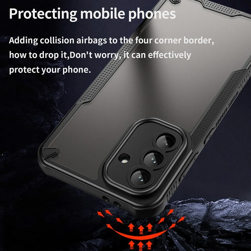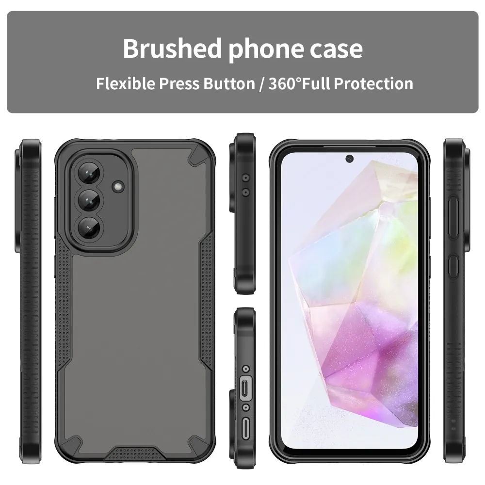 ✅【Tartós és könnyű konstrukció】A Samsung Galaxy A56 5G készülékhez készült matt, tartós, fekete tok kemény PC-ből és puha TPU-ból készült. A tok tartós és könnyű, strapabíró védelmet nyújt anélkül, hogy növelné a telefon méreteit. ✅【Gél peremű】 A TPU tömör, puha pereme sztereó gombokkal, kényelmes fogást biztosít, biztonságos fogást biztosít és csökkenti a véletlen leejtések kockázatát. ✅【Megerősített sarkok】 A négyszögletes légzsákos kialakítás fokozott védelmet nyújt, és javítja a készülék ütés- és leejtésállóságát. ✅【Kamera- és képernyővédelem】 Az 1 mm-es megemelt perem a kamera és a képernyő körül maximális védelmet nyújt a karcolások és az leejtések ellen. ✅【Stílusos és praktikus kialakítás】 A félig átlátszó matt felület nemcsak a telefon esztétikáját fokozza, hanem ellenáll az ujjlenyomatoknak és a foltoknak is, így a telefon elegáns megjelenésű. ✅【Precíz kivágások a könnyű hozzáférés érdekében】A precíz kivágásoknak köszönhetően a tok könnyű hozzáférést biztosít az összes gombhoz, porthoz és kamerához, így a tok eltávolítása nélkül is biztosítható a teljes funkcionalitás.