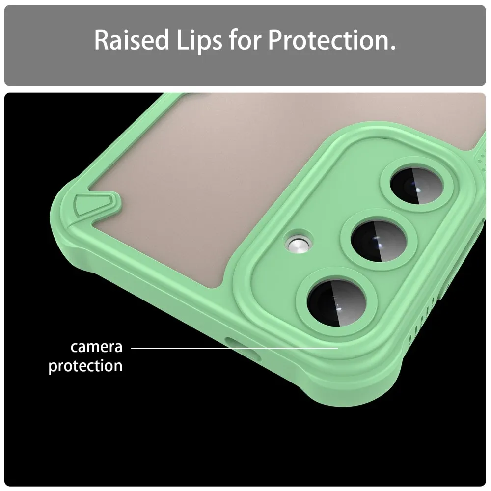 ✅【Tartós és könnyű konstrukció】A Samsung Galaxy S25+ matt zöld színű tokja kemény PC-ből és puha TPU-ból készült. A tok tartós és könnyű, strapabíró védelmet nyújt anélkül, hogy növelné a telefon súlyát. ✅【Gél peremű】 TPU tömör, puha peremű, sztereó gombokkal, kényelmes fogást biztosít, biztonságos fogást biztosít és csökkenti a véletlen leejtések kockázatát. ✅【Megerősített sarkok】 A négyszögletes légzsákos kialakítás fokozott védelmet nyújt, és javítja a készülék ütés- és leejtésállóságát. ✅【Kamera- és képernyővédelem】 Az 1 mm-es megemelt perem a kamera és a képernyő körül maximális védelmet nyújt a karcolások és leejtések ellen. ✅【Stílusos és praktikus kialakítás】 A félig átlátszó matt felület nemcsak a telefon esztétikáját fokozza, hanem ellenáll az ujjlenyomatoknak és a foltoknak is, így a telefon elegáns megjelenésű. ✅【Precíz kivágások a könnyű hozzáférés érdekében】A precíz kivágásoknak köszönhetően a tok könnyű hozzáférést biztosít az összes gombhoz, porthoz és kamerához, így a tok eltávolítása nélkül is biztosítható a teljes funkcionalitás.