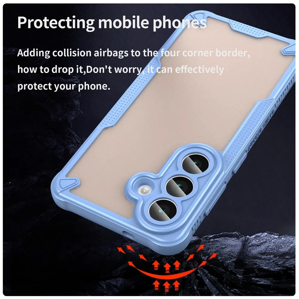 ✅【Tartós és könnyű konstrukció】A Samsung Galaxy S26 készülékhez készült matt keménytok kék színben, kemény PC-ből és puha TPU-ból készült. A tok tartós és könnyű, strapabíró védelmet nyújt anélkül, hogy növelné a telefon méreteit. ✅【Gél peremű】 TPU tömör, puha peremű, sztereó gombokkal, kényelmes fogást biztosít, biztonságos fogást biztosít és csökkenti a véletlen leejtések kockázatát. ✅【Megerősített sarkok】 A négyszögletes légzsákos kialakítás fokozott védelmet nyújt, és javítja a készülék ütés- és leejtésállóságát. ✅【Kamera- és képernyővédelem】 Az 1 mm-es megemelt perem a kamera és a képernyő körül maximális védelmet nyújt a karcolások és az esések ellen. ✅【Stílusos és praktikus kialakítás】 A félig átlátszó matt felület nemcsak a telefon esztétikáját fokozza, hanem ellenáll az ujjlenyomatoknak és a foltoknak is, így a telefon elegáns megjelenésű. ✅【Precíz kivágások a könnyű hozzáférés érdekében】A precíz kivágásoknak köszönhetően a tok könnyű hozzáférést biztosít az összes gombhoz, porthoz és kamerához, így a tok eltávolítása nélkül is biztosítható a teljes funkcionalitás.